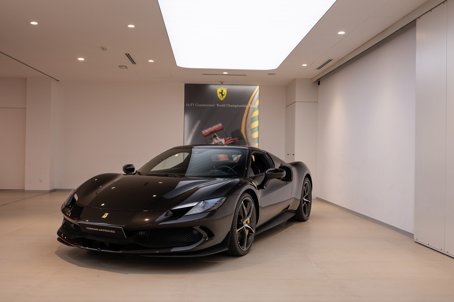 This 2023 car from Scuderia Monte-Carlo is finished in Nero Daytona over Nero, shows just 1,169 km, and is covered by Ferrari’s 7-Year Maintenance Program until 31/05/2030.