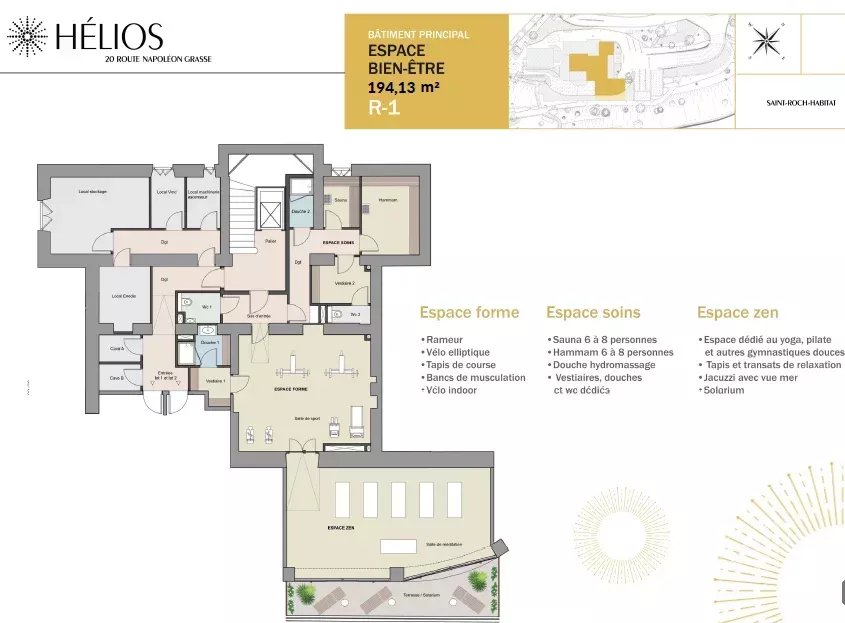 Nestled within a fully restored historic building, the Hélios residence embodies charm and elegance on the hills of Grasse. It offers breathtaking views over the town, the surrounding hills, and all the way to the sea.