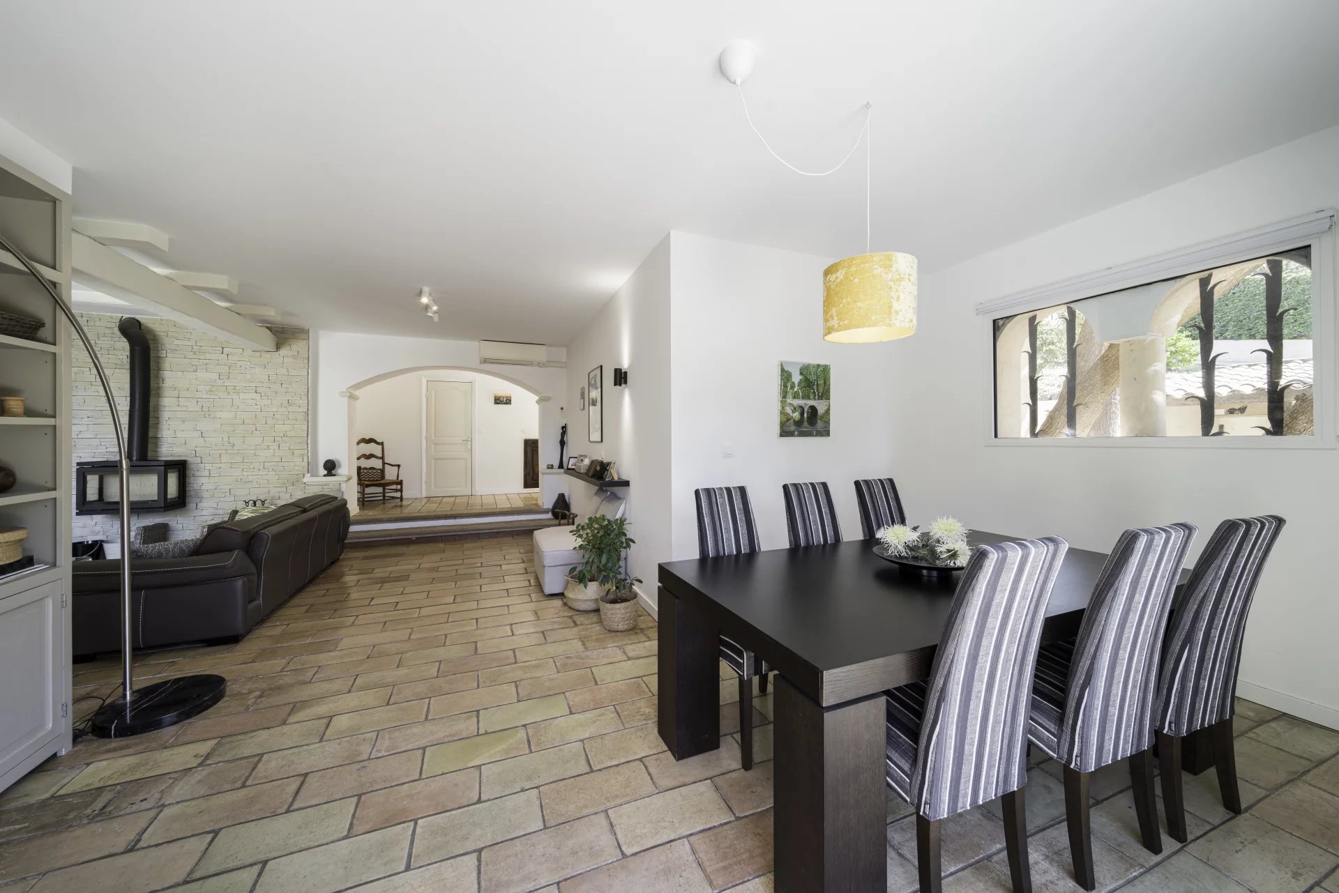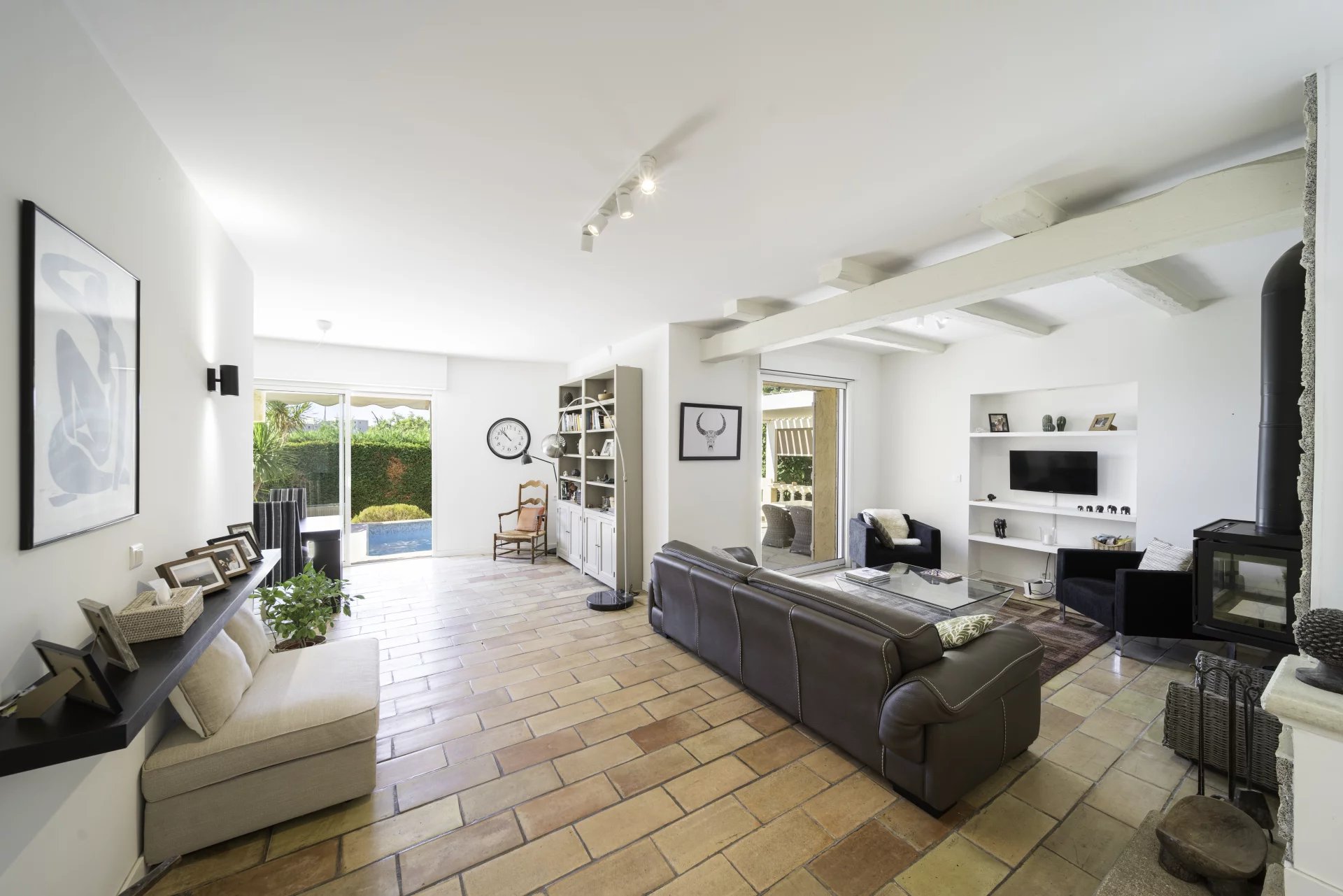 Located in the sought-after residential area of Peyregoue, in Antibes, this semi-detached villa enjoys a peaceful and secure setting within a gated community offering tranquility and excellent lifestyle.