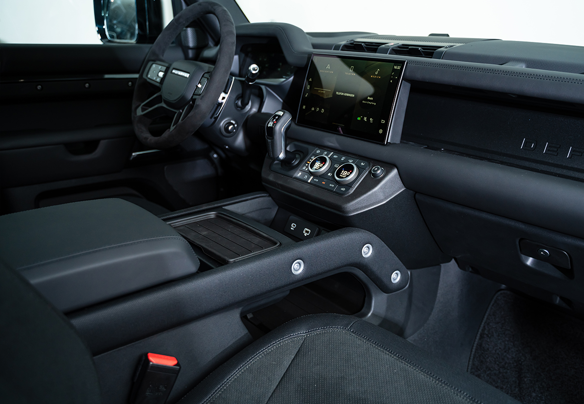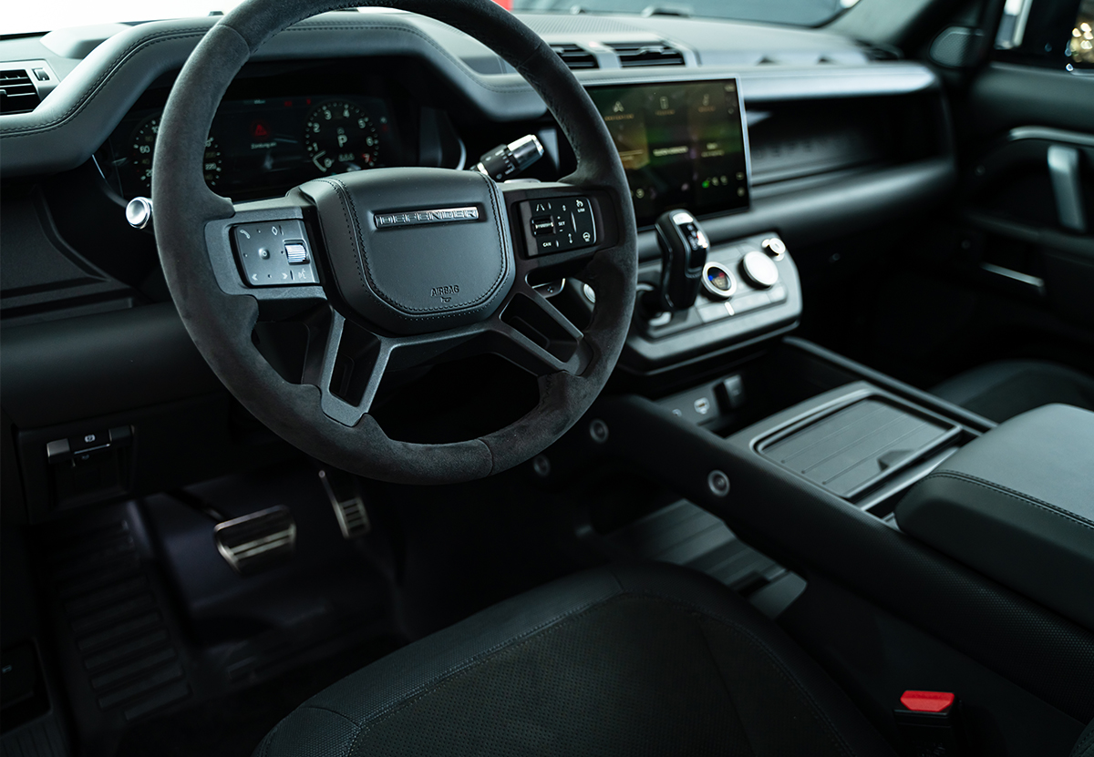 Inside, the Defender 90 combines practicality with sophistication. High-quality materials, leather seating, and state-of-the-art technology create an interior that is both functional and luxurious. Whether navigating winding roads or exploring off-road paths, it guarantees stability, comfort, and style.