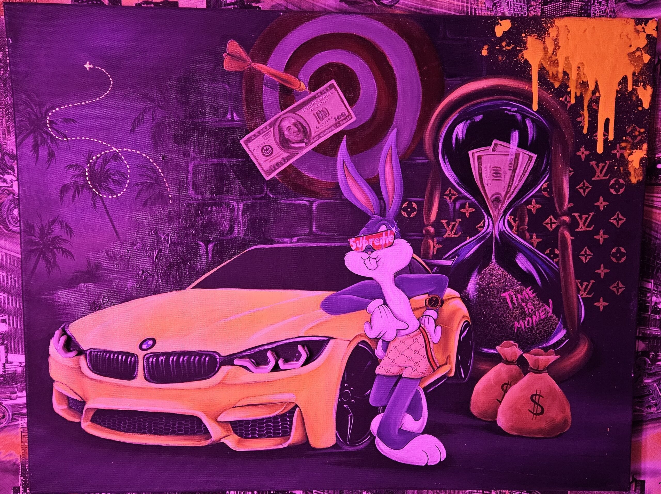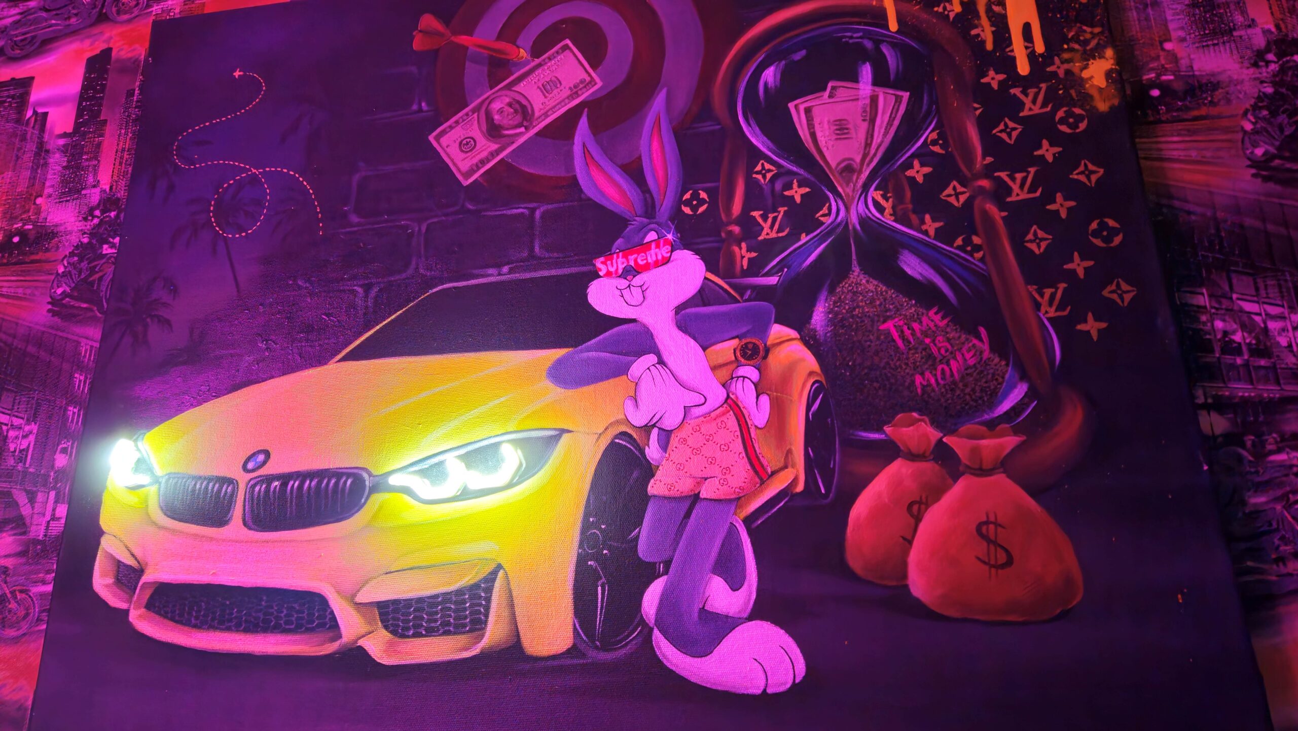 This exclusive painting is the epitome of style, ambition and success. It combines luxury design with functionality: the integrated neon tubes create the “Angel Eyes” BMW effect, turning the painting into a stylish nightlight.