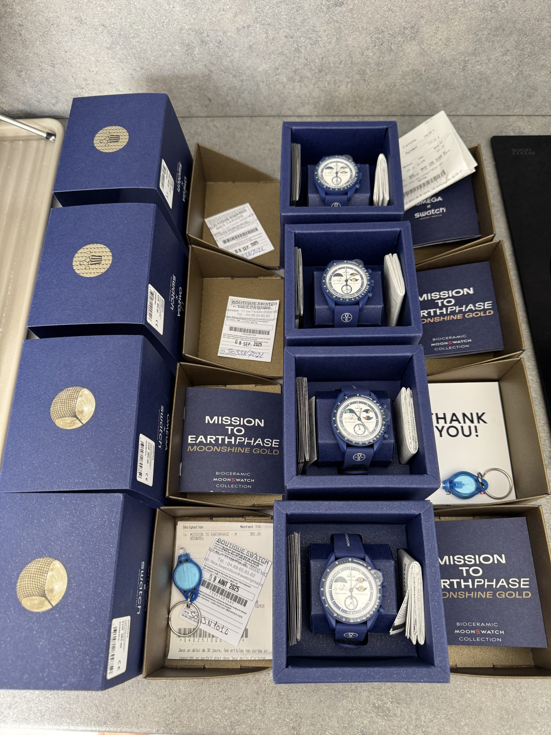 Hi, selling Swatch x Omega Snoopy Moonswatch Mission To Earthphase Moonshine Gold & popcorn version.