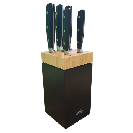 Bring professional precision into your kitchen with the Seattle block and 5 Janus knives by Sabatier. Crafted for performance and durability, this set combines functionality with timeless design.