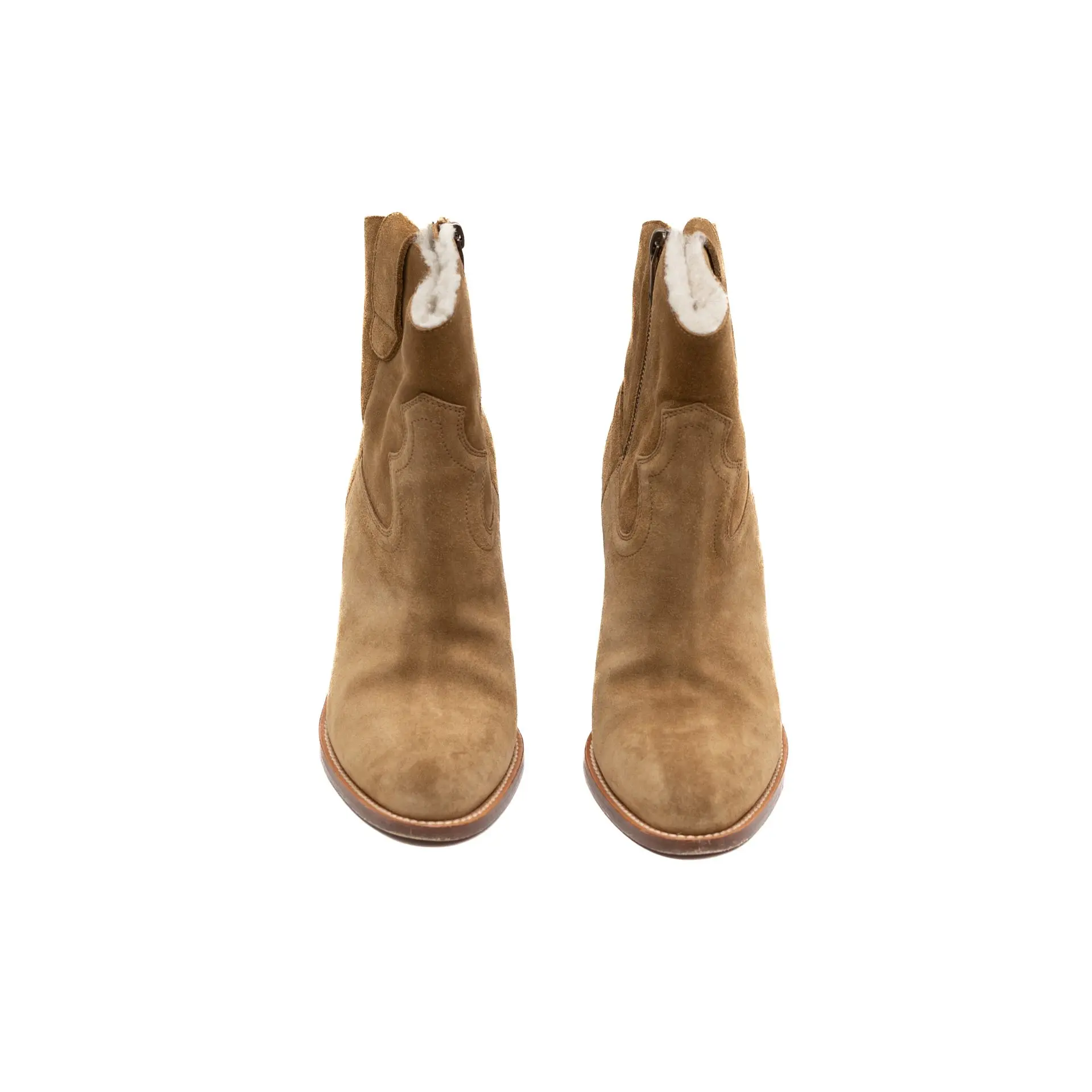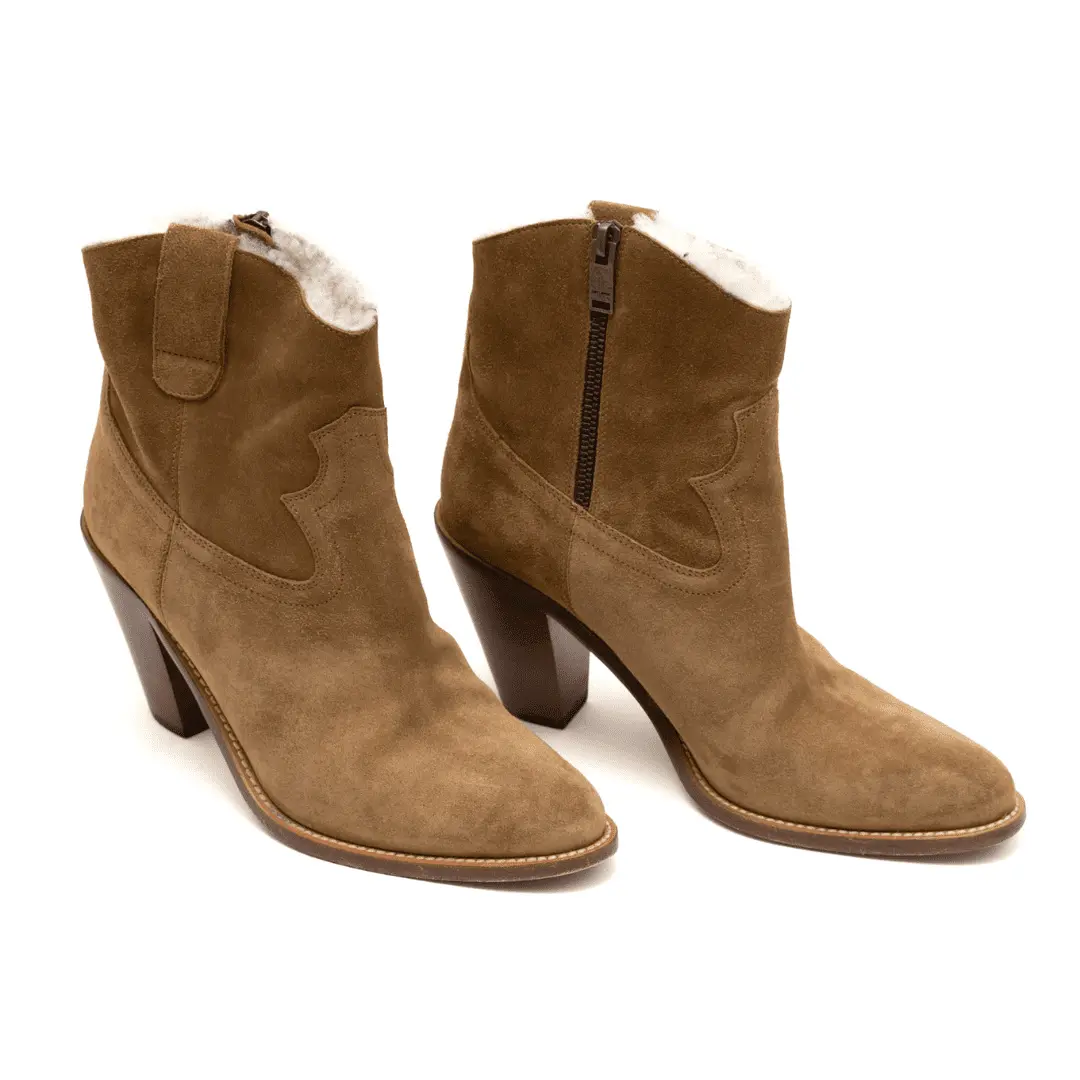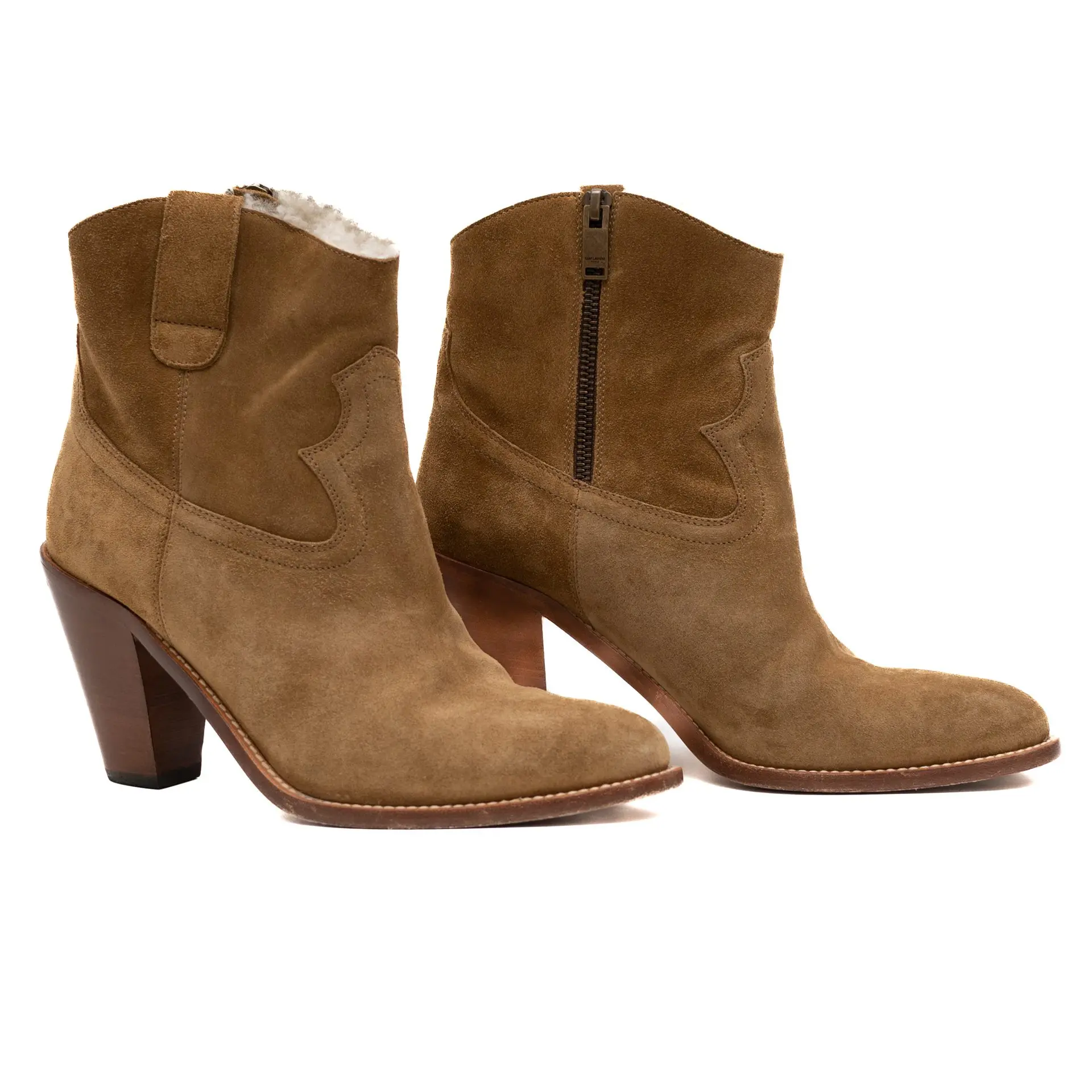 SAINT LAURENT BROWN SUEDE ANKLE BOOTS – FUR LINED