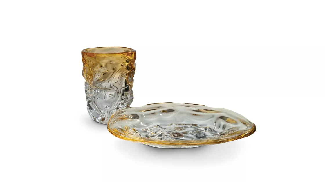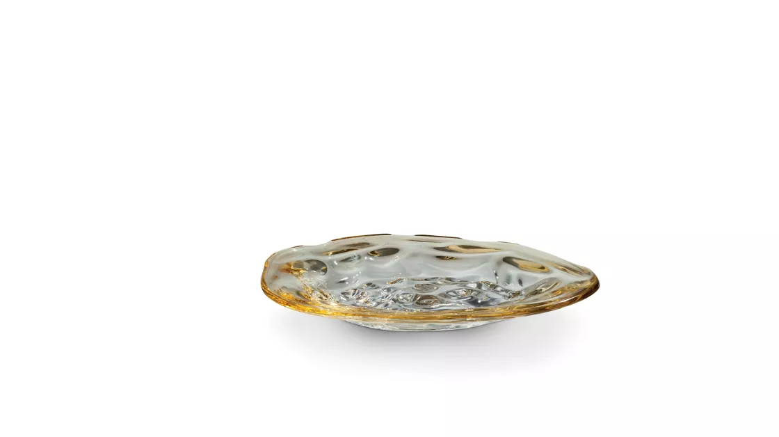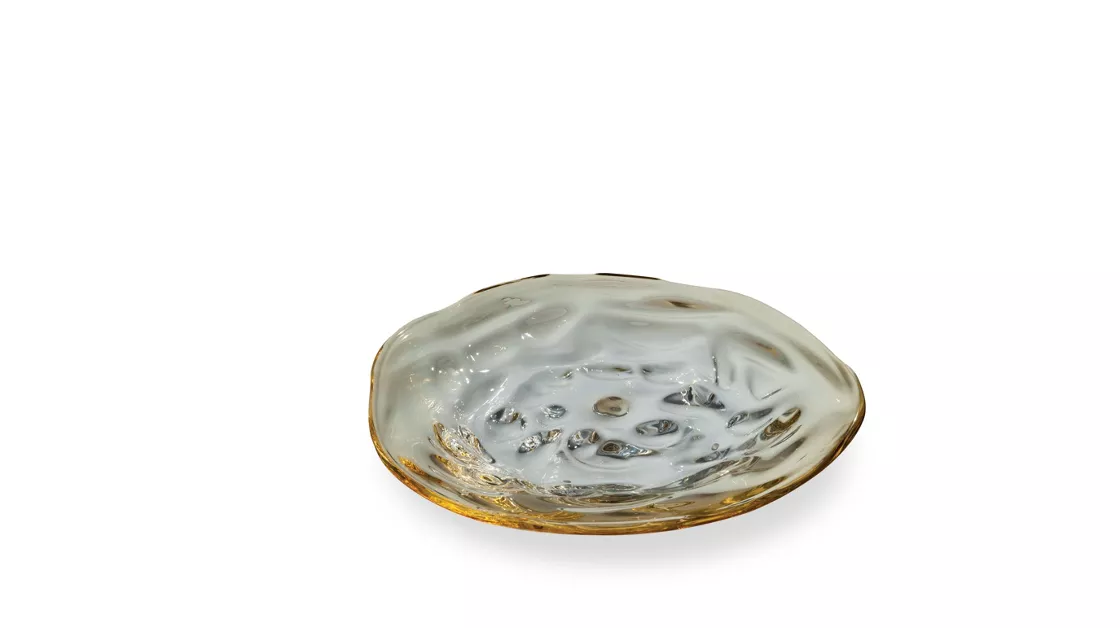 The Fluid Centerpiece in amber Murano glass is a striking example of artisanal craftsmanship. Each piece is mouth-blown, making it unique in form and detail. Its rich amber hue and elegant design create a refined focal point, perfect for enhancing contemporary interiors.