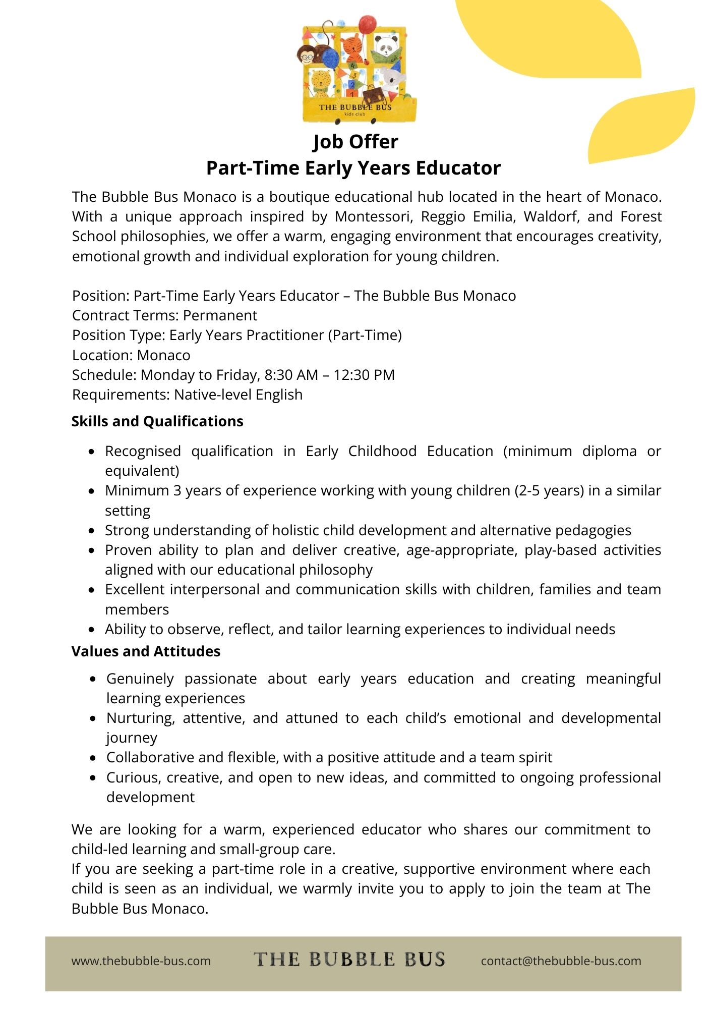 with experience working in nurseries, preschools, or similar early childhood settings, especially with little ones aged 2–5 years. If you’re passionate about early childhood education, or know someone who is, get in touch!