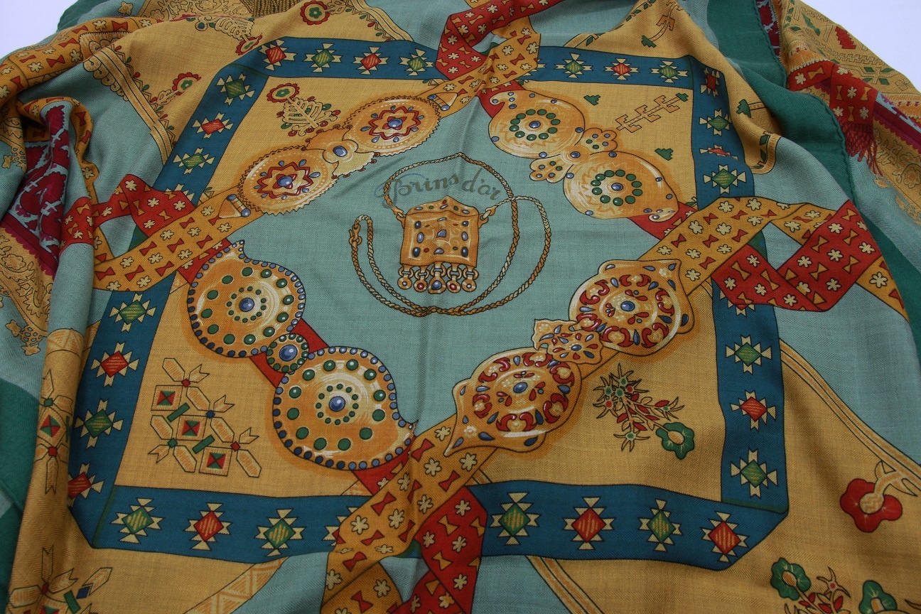 Discover timeless Parisian elegance with this exquisite Hermès shawl, crafted from a luxurious blend of 65% cashmere and 35% silk. Designed and signed by J. Abadie, this multicolor piece showcases the house’s signature artistry and refined craftsmanship.