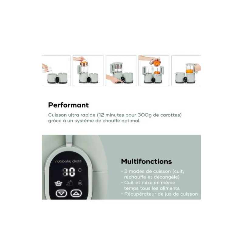 The Babymoov Nutribaby Glass is the most efficient food processor for quick, healthy, and homemade baby meals. Its innovative design with glass bowls preserves natural flavors and nutrients while doubling cooking speed — perfect for busy parents who don’t compromise on quality.