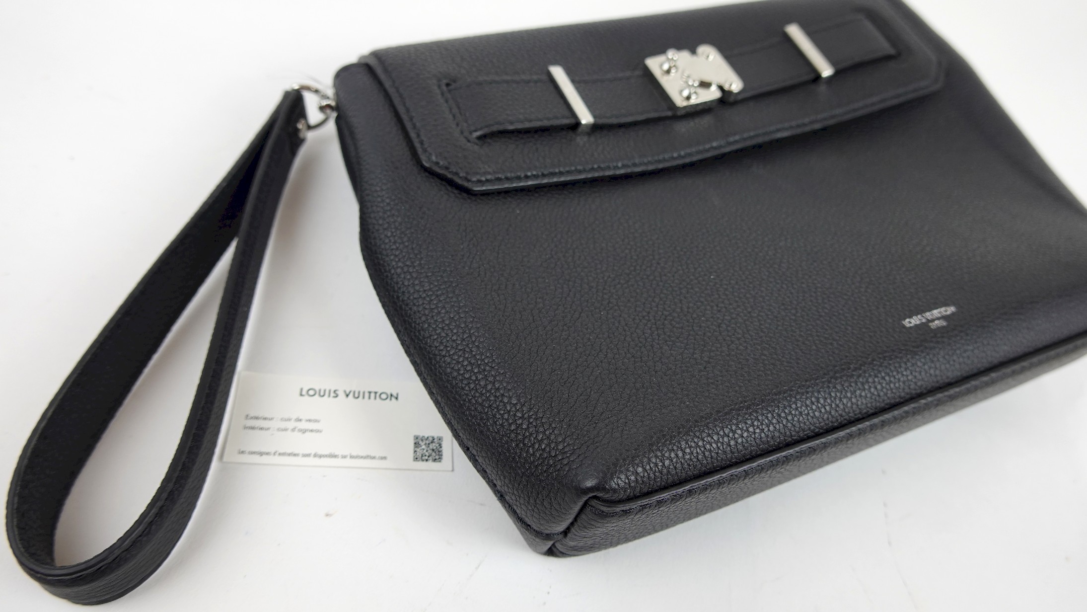 LOUIS VUITTON BLACK LEATHER CLUTCH