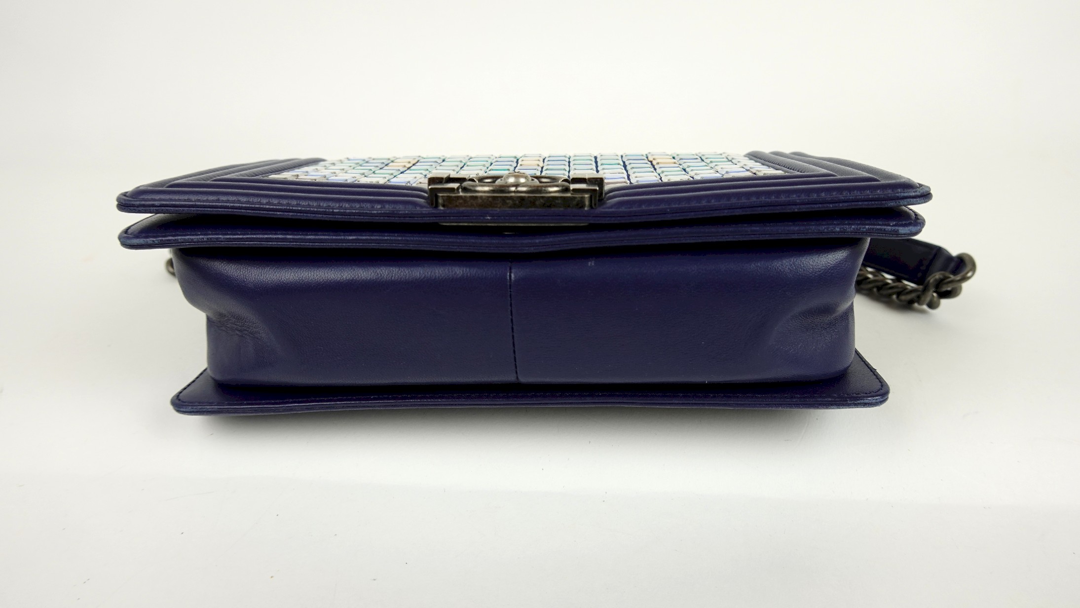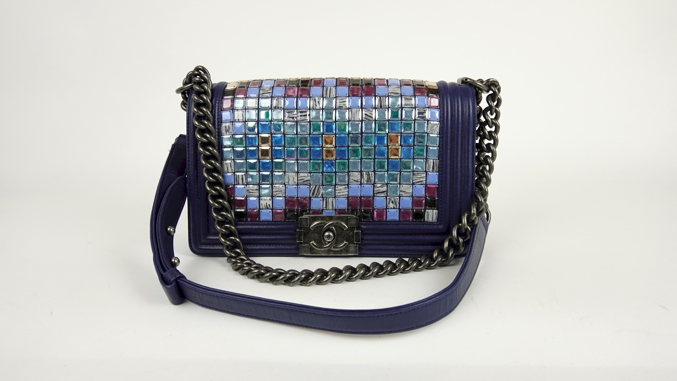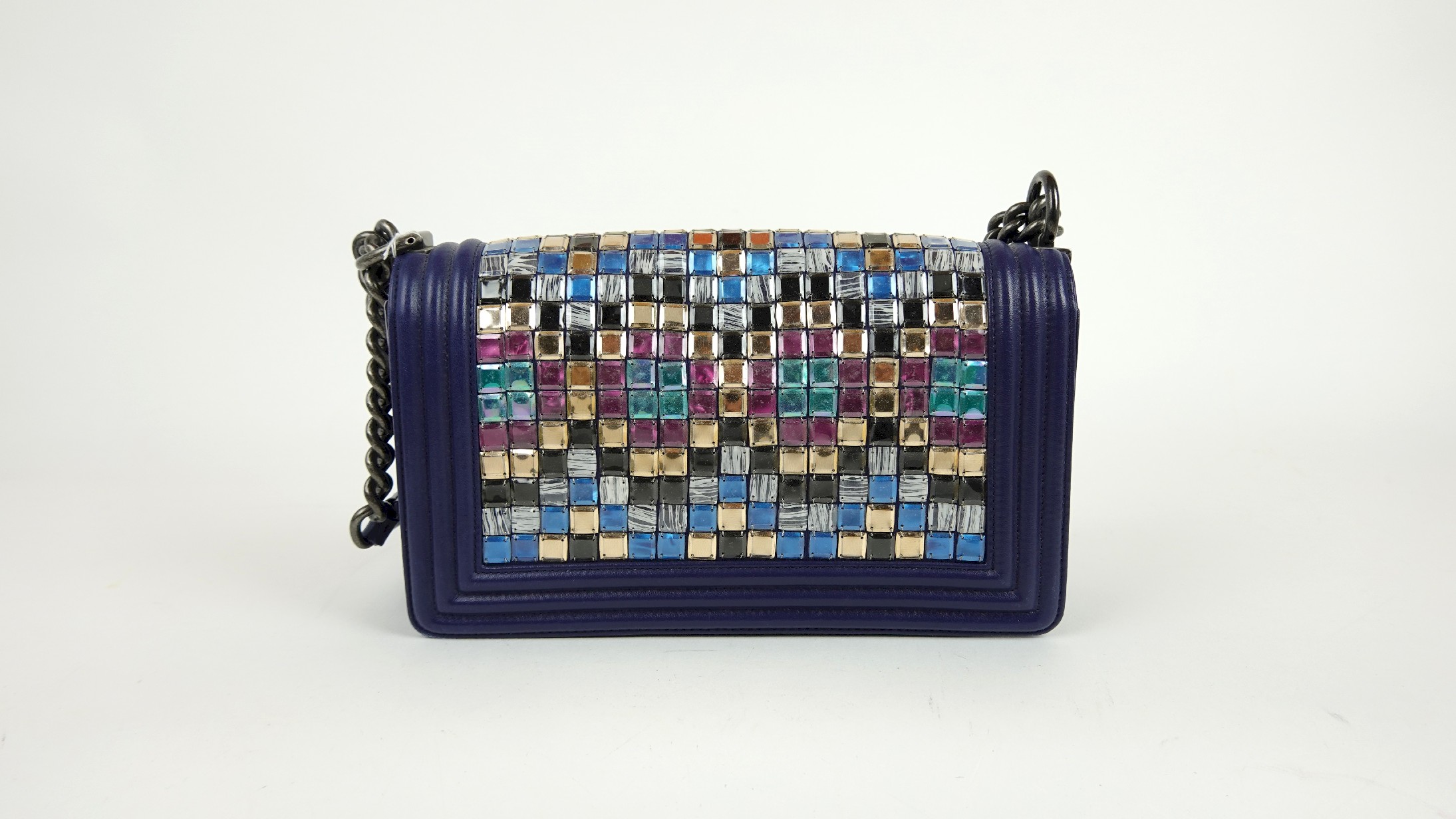 CHANEL MOSAIC BOY SHOULDER BAG IN NAVY BLUE LAMBSKIN LEATHER