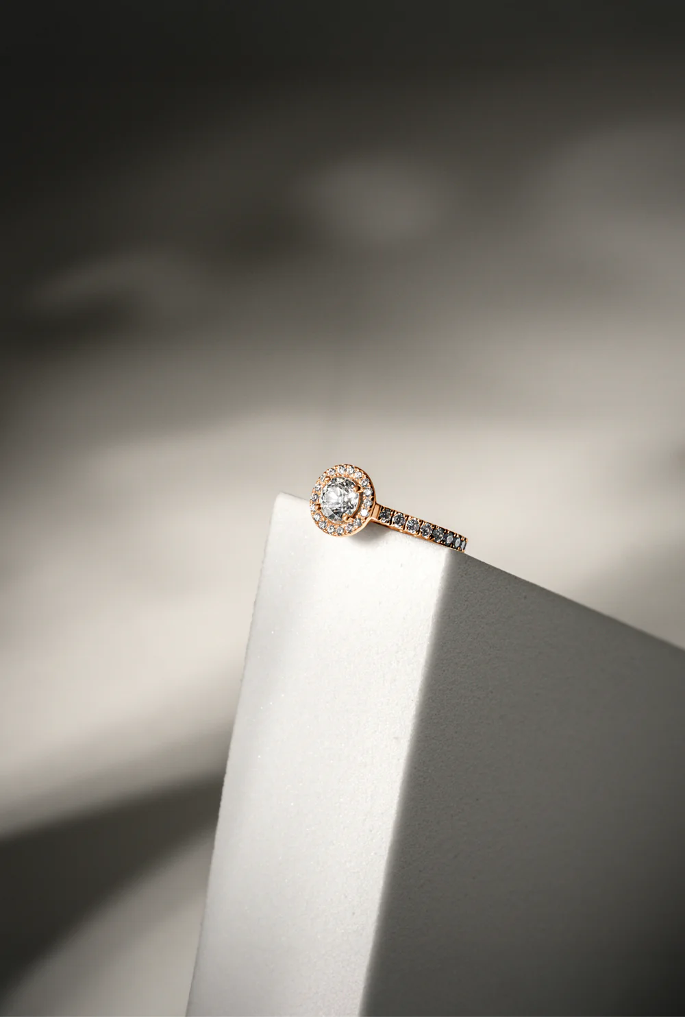 The Sun Ring by Charlotte.B radiates brilliance and warmth, symbolizing light and energy. Crafted in 18k rose gold and fully paved with diamonds, this luminous piece captures the essence of refined luxury and feminine strength. Made in Monaco, it reflects exceptional craftsmanship and timeless allure.