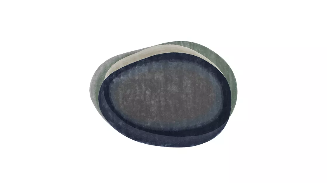 The Stone rug by Roche Bobois draws inspiration from the organic shapes of river pebbles, layered and softened by water. Its combination of natural tones and varied thicknesses creates a soothing, tactile surface that adds depth and tranquility to any interior.