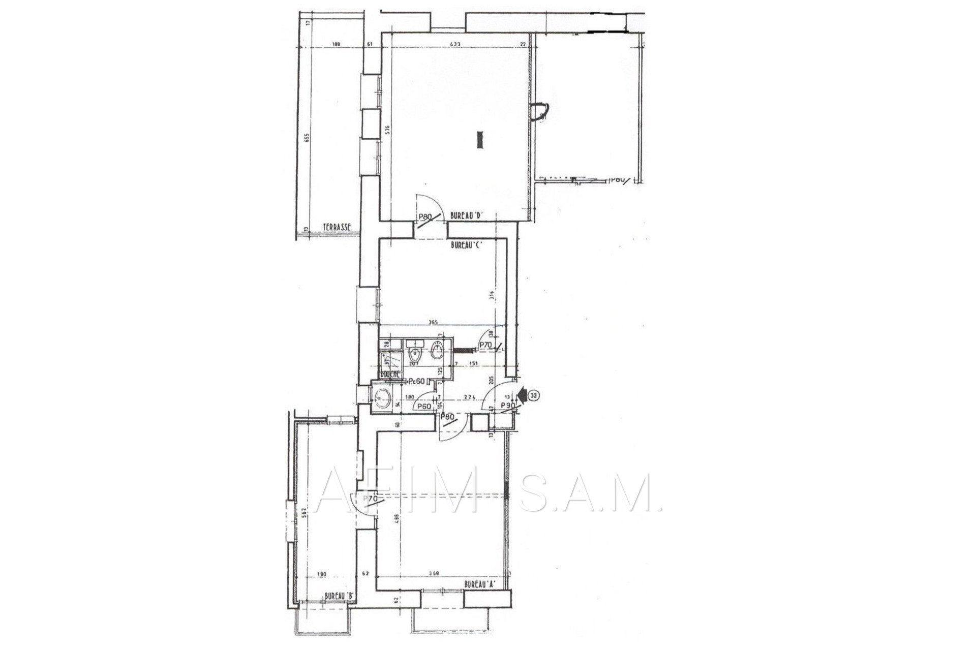 4 pièces actuellement loué en bureau, dans un immeuble bourgeois, proche de toutes commodités, situé sur le boulevard des Moulins, quartier de Monte Carlo, à quelques pas du Casino et de ses jardins.