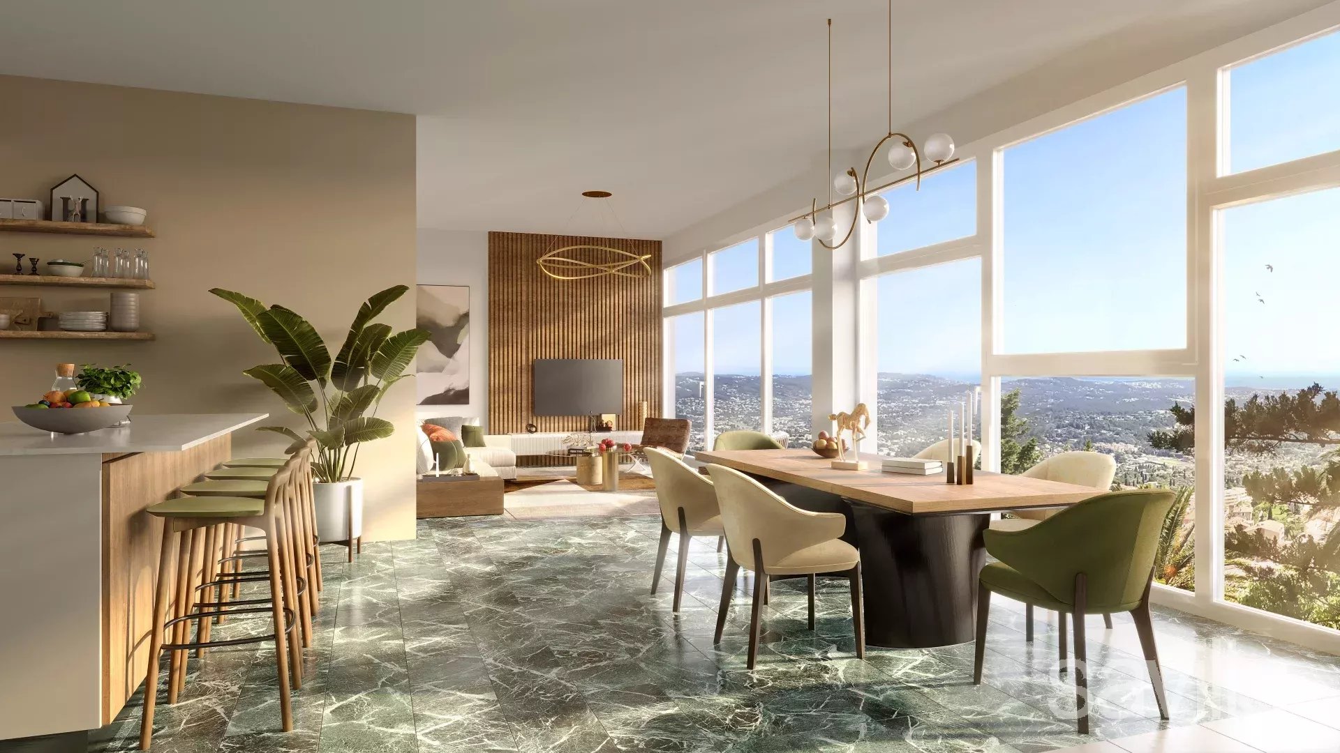 Nestled within a fully restored historic building, the Hélios residence embodies charm and sophistication on the hills of Grasse. It offers sweeping views over the town, the surrounding hills, and all the way to the sea.