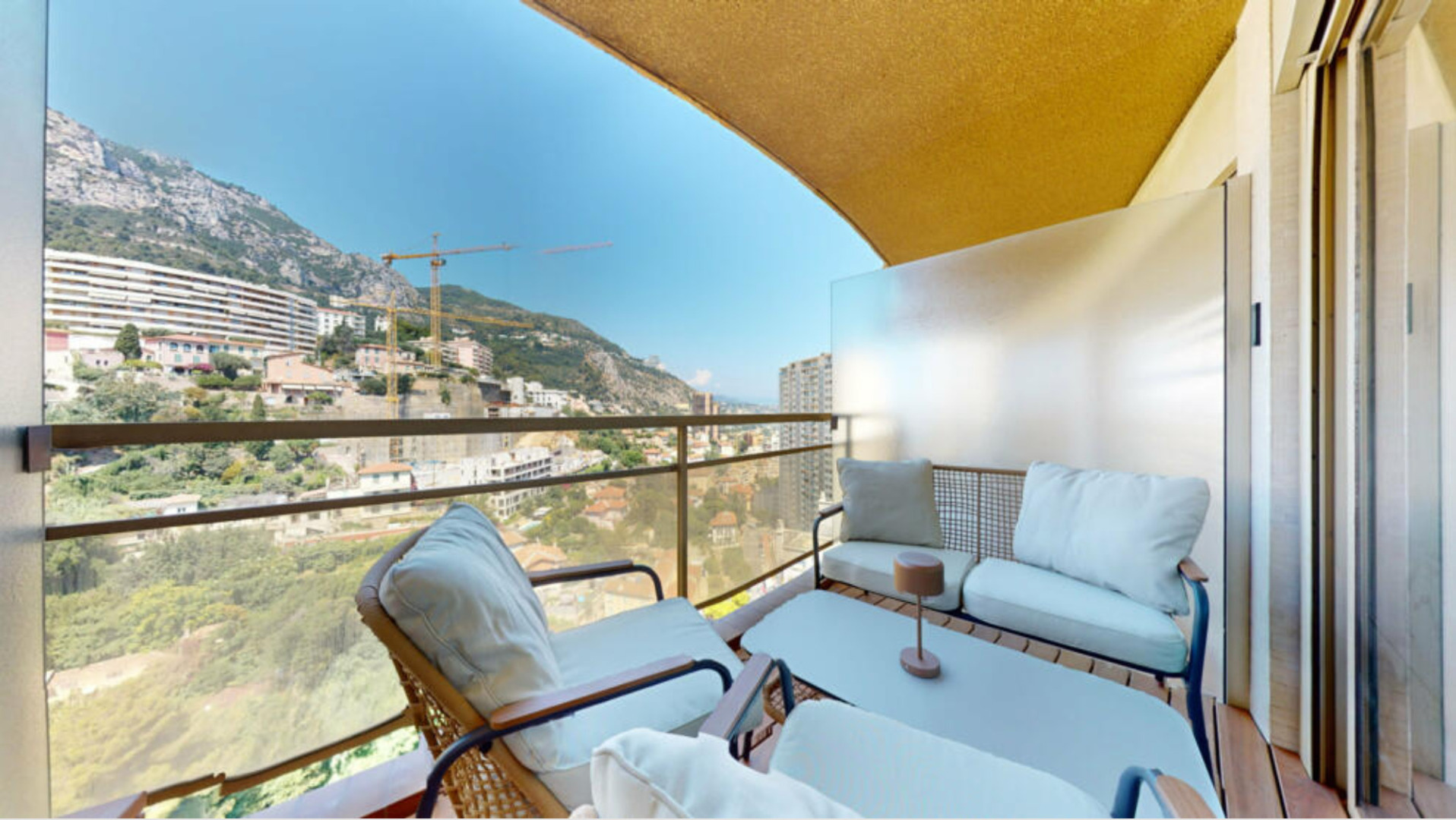 – Sunny loggia with mountain and city views