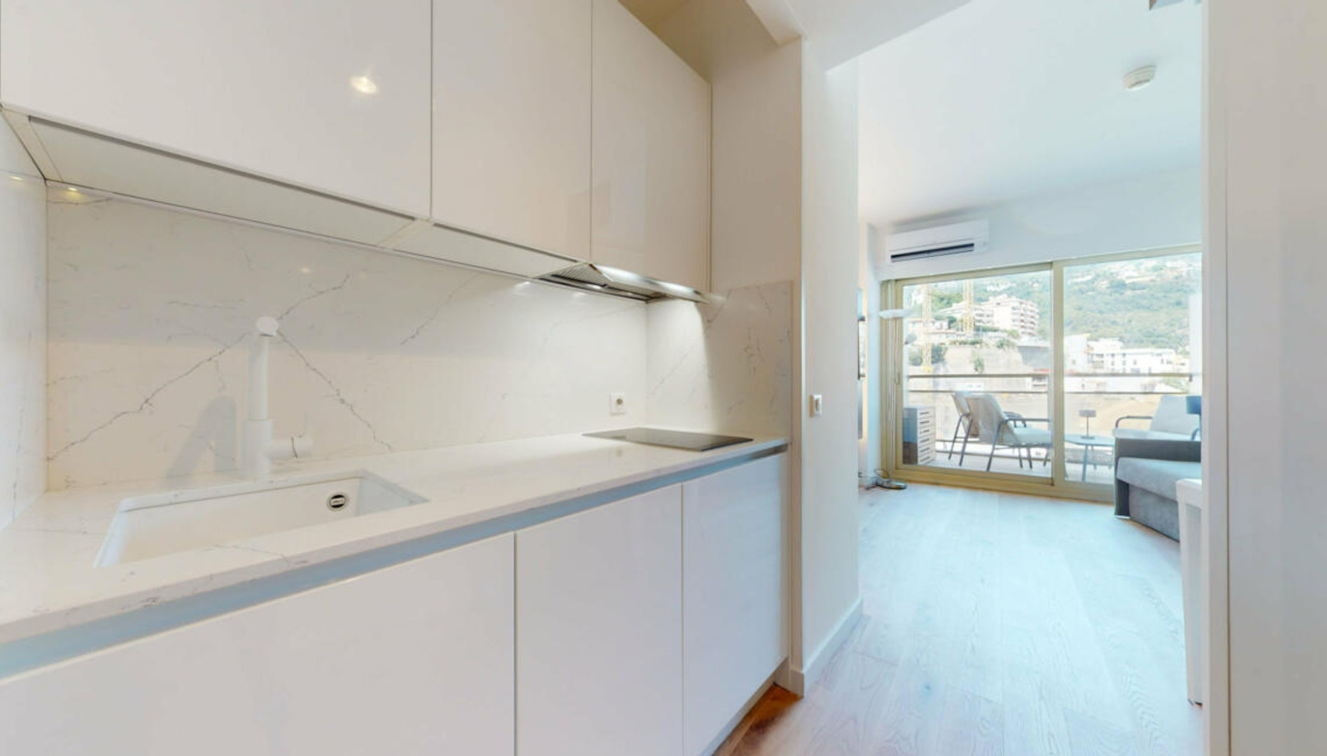 Located near the city center and Larvotto beaches, this elegant studio in the prestigious L’Annonciade residence combines modern comfort, panoramic views, and refined design. The residence features a 24-hour concierge and recently renovated common areas, including the lobby and hallways.