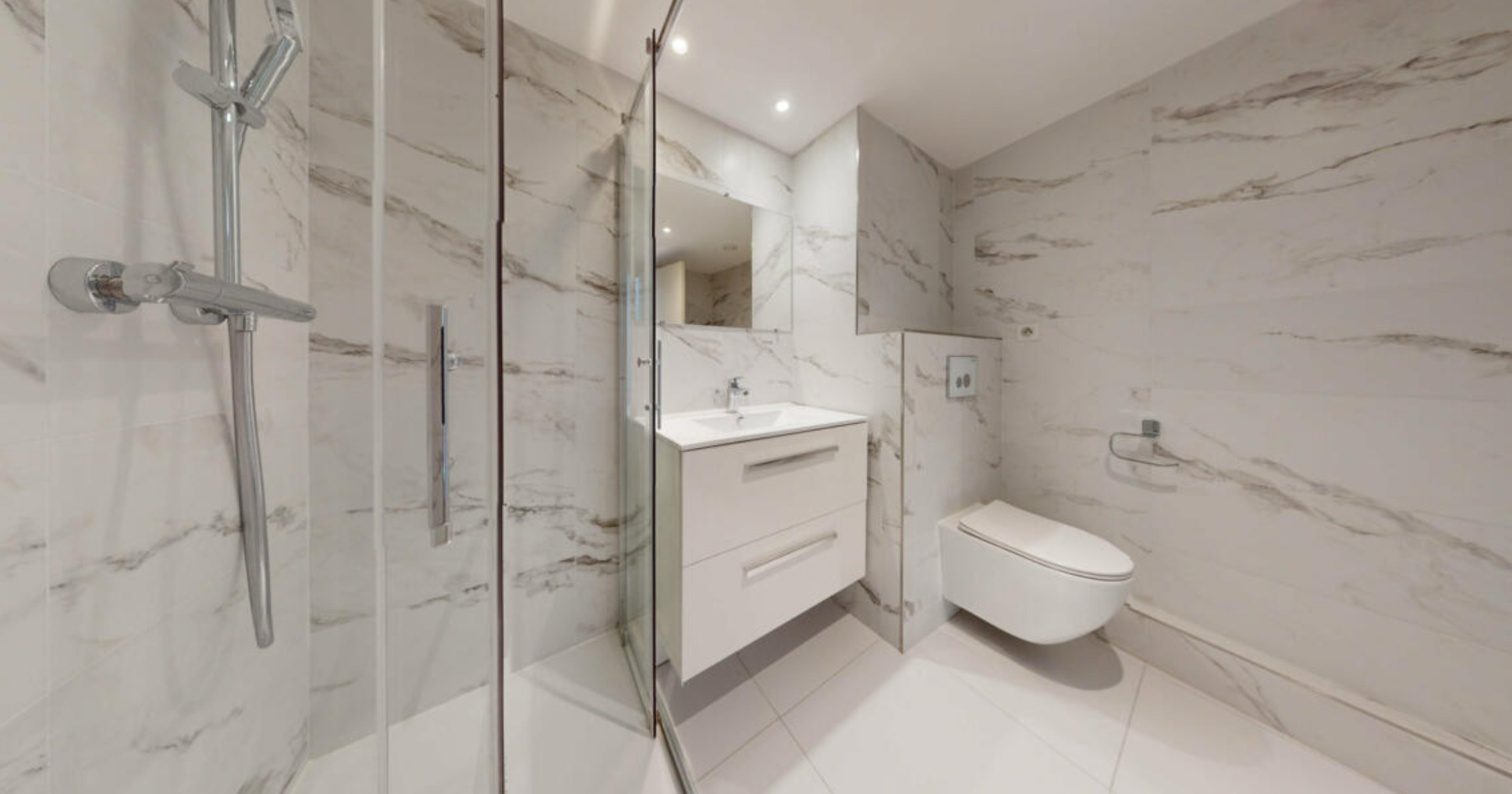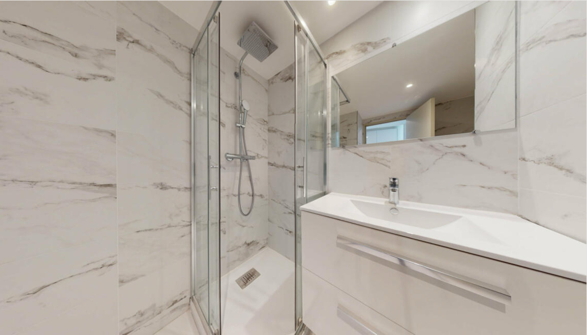 – Renovated bathroom with modern fittings