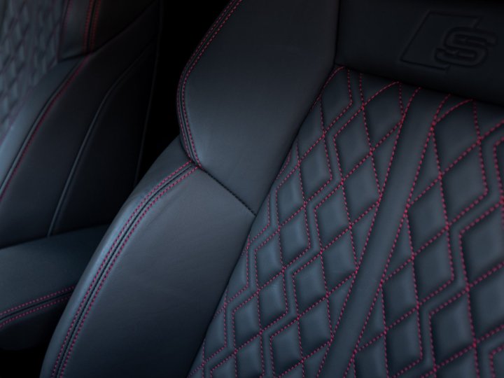 – Leather sport seats with red stitching, heated (front)