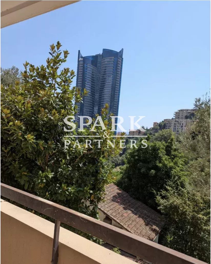 With 52 m² of living space, it comprises an entrance hall, a bright living room with open-plan kitchen opening onto a 10 m² terrace offering a beautiful unobstructed view of the garden, the Odeon Tower and the sea.