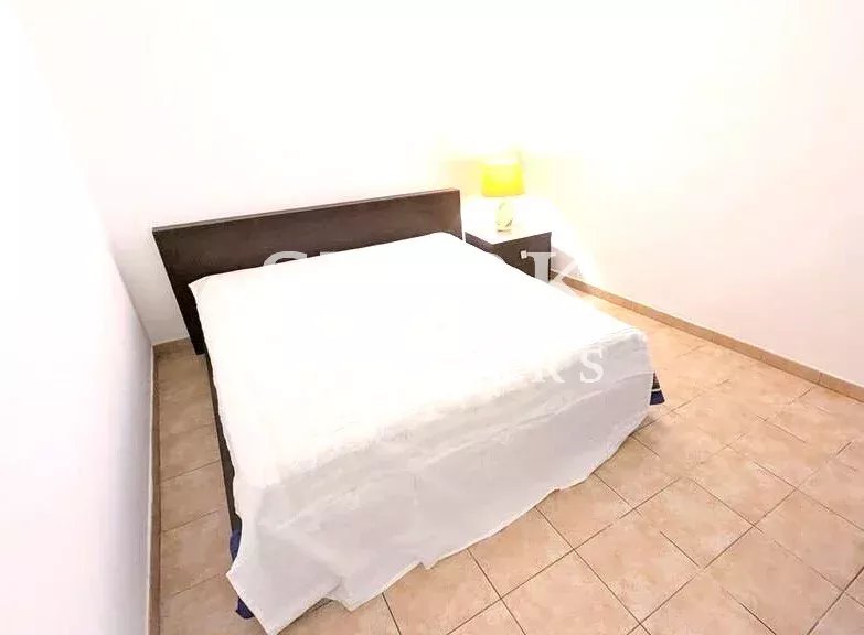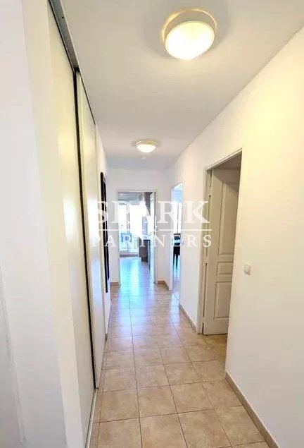 With a surface area of 74 m², it comprises an entrance hall with built-in cupboard, a bright living room opening onto the exterior and a fully-equipped independent kitchen. The master bedroom also features a built-in closet, and the apartment includes two bathrooms, one with shower and the other with bathtub, as well as a separate toilet.