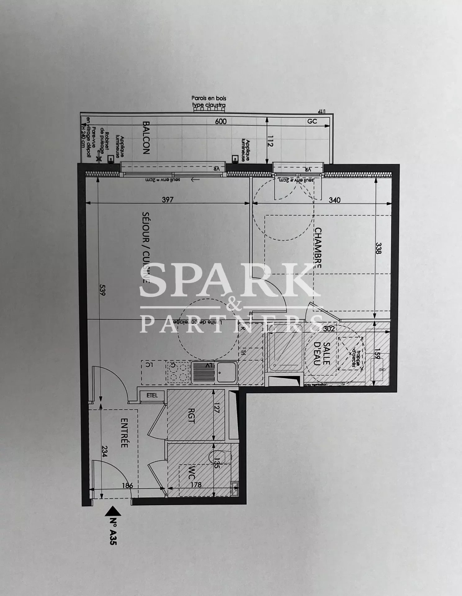This 2-room apartment comprises an entrance hall, living room with open kitchen, bedroom, shower room, guest toilet and terrace.