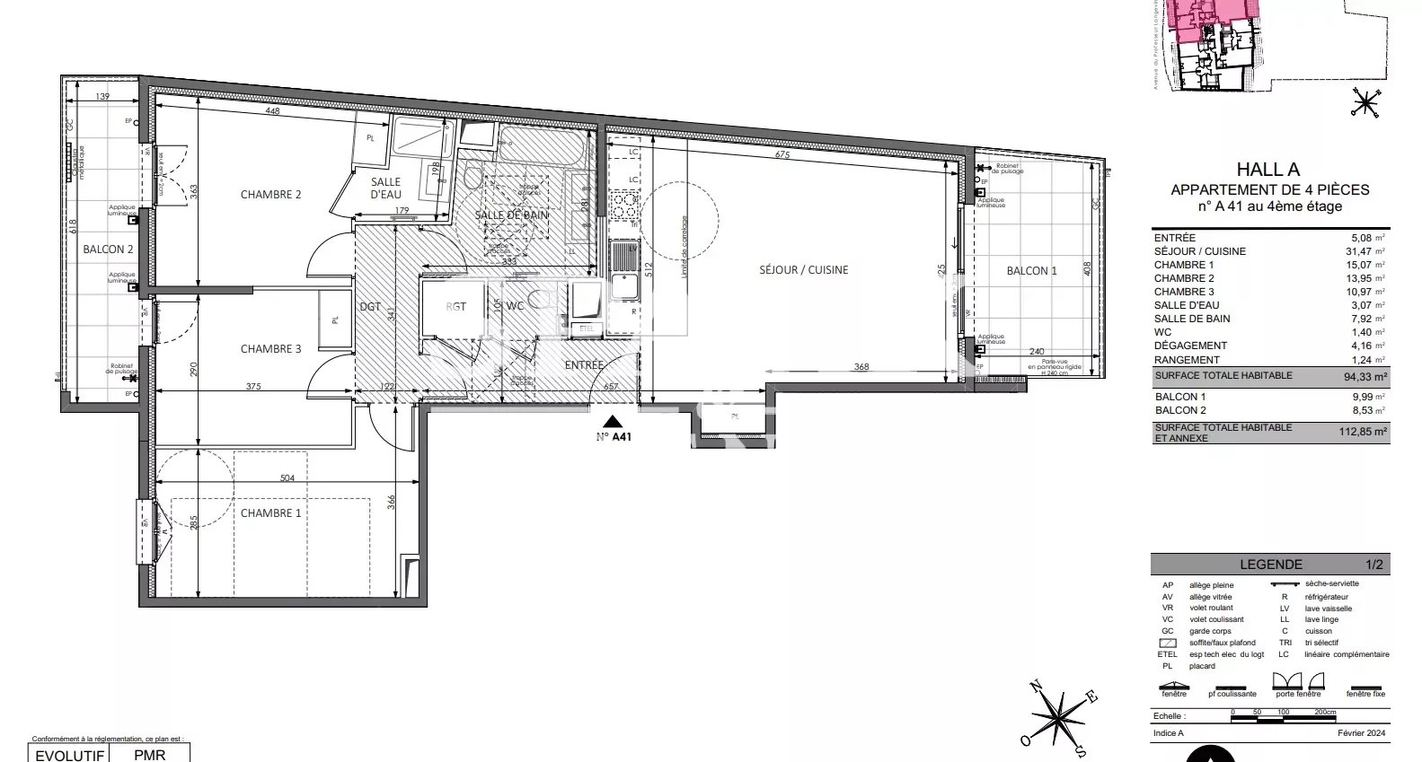 This 4-room apartment comprises an entrance hall, a spacious living room with open kitchen, 3 bedrooms, a shower room, a bathroom, a guest toilet, a storage area and two beautiful terraces.