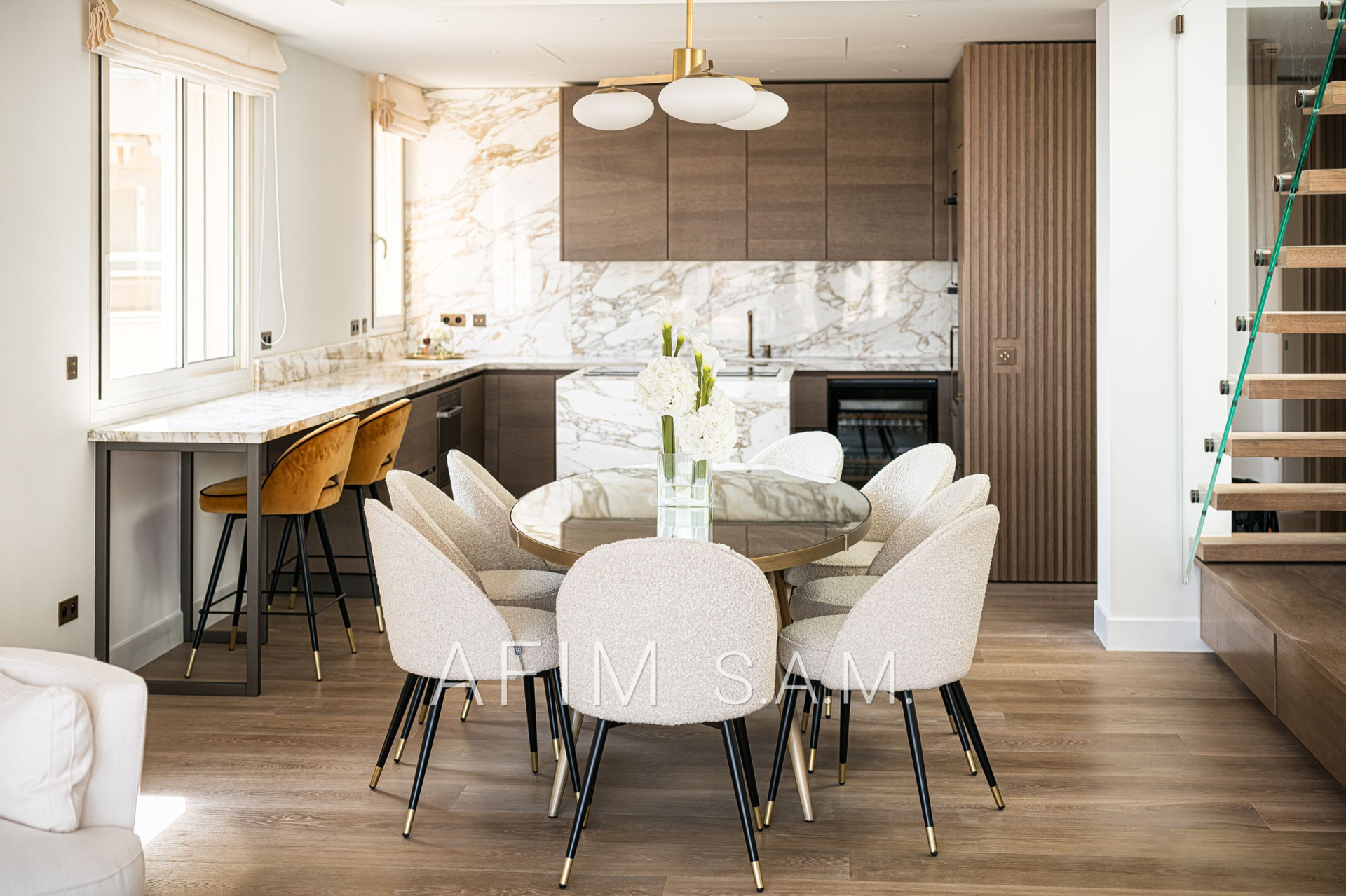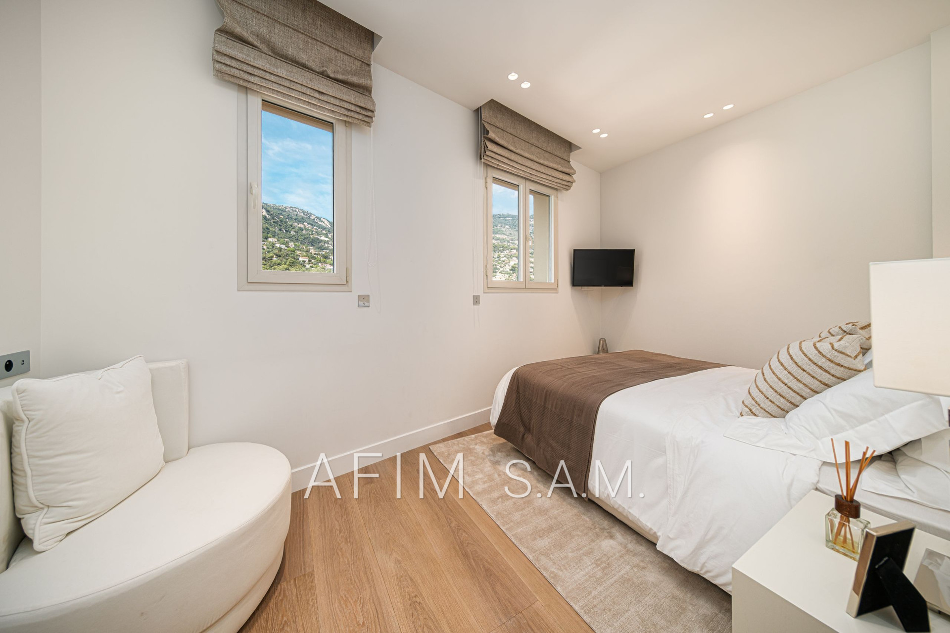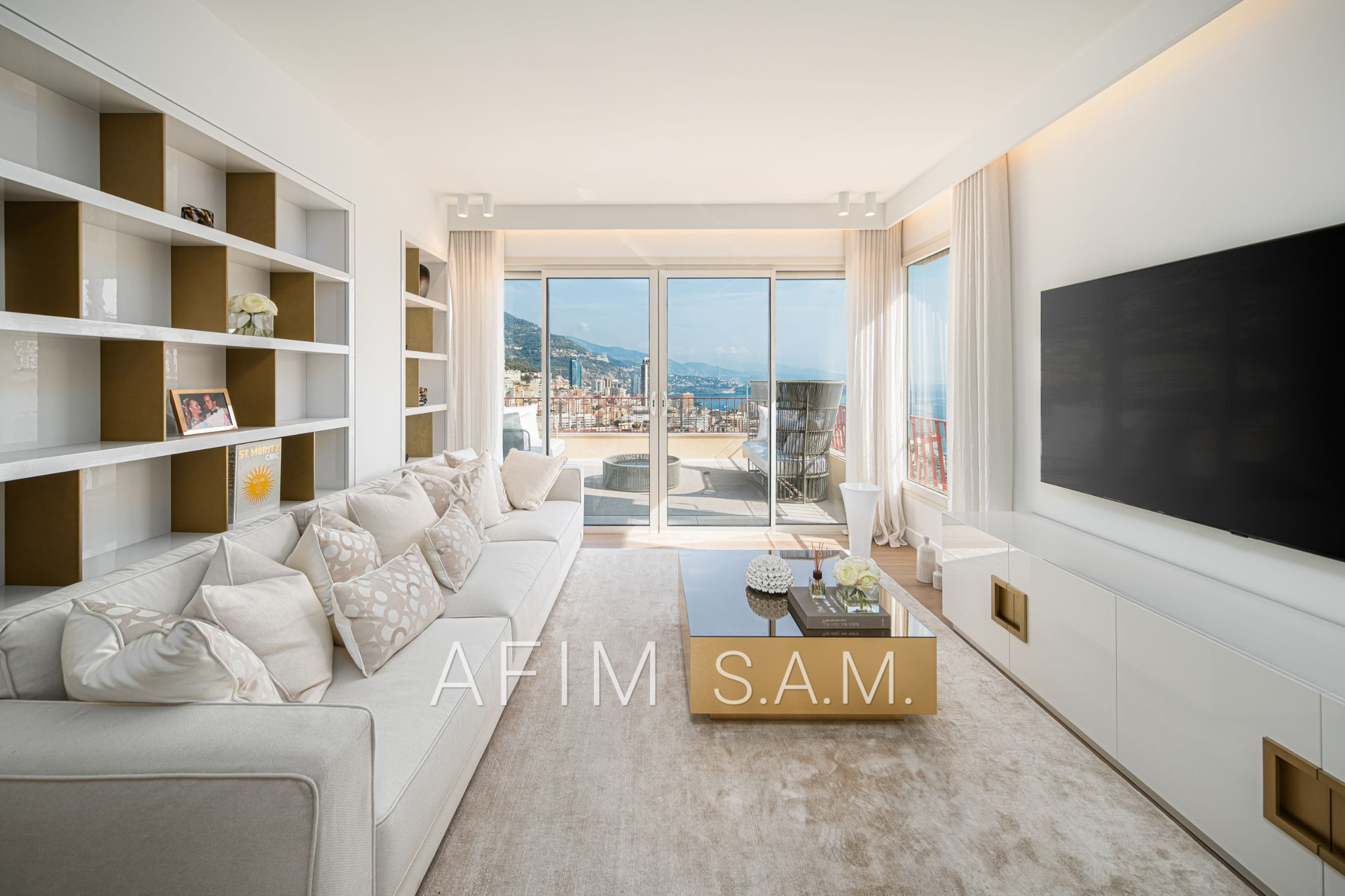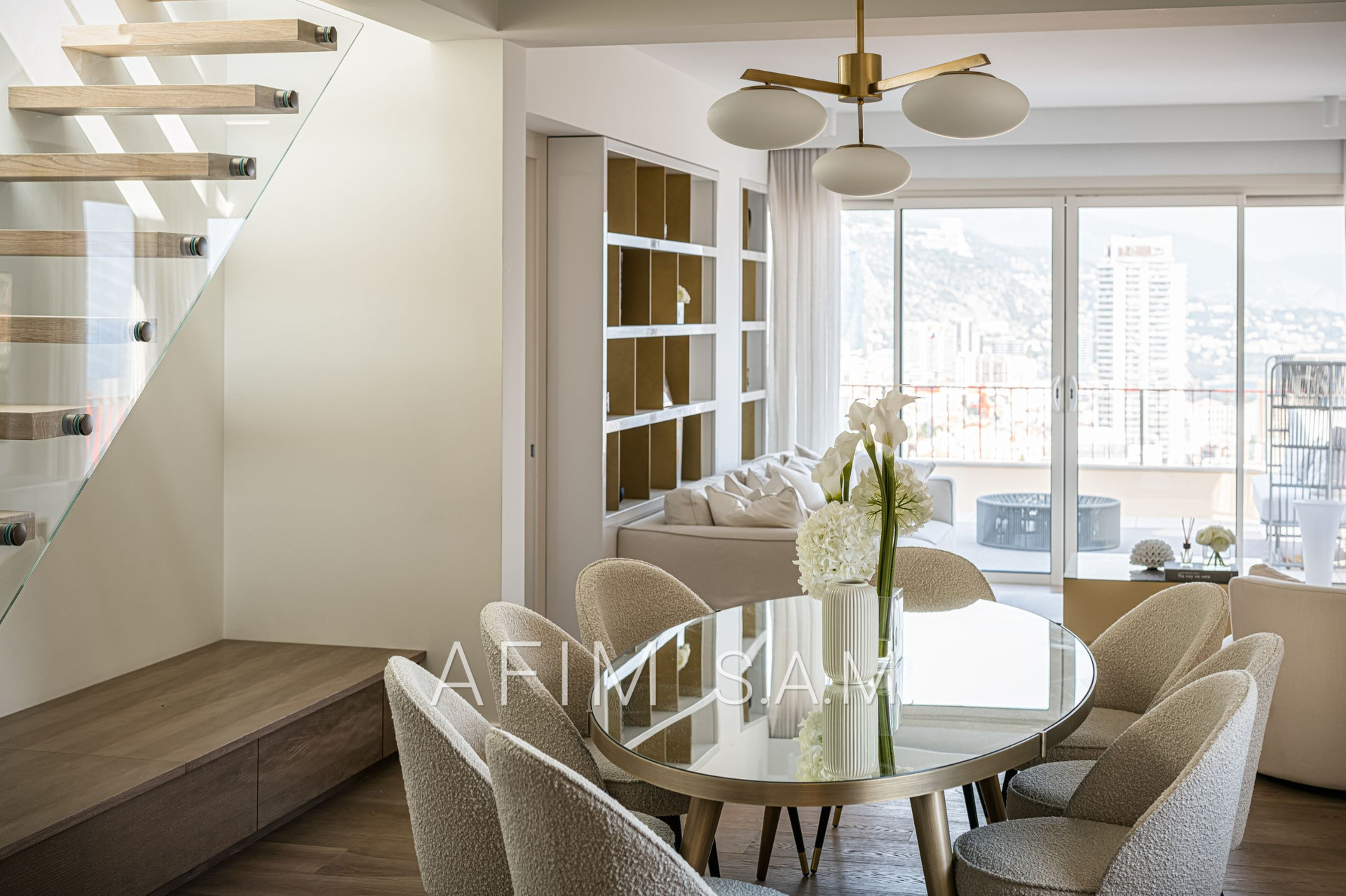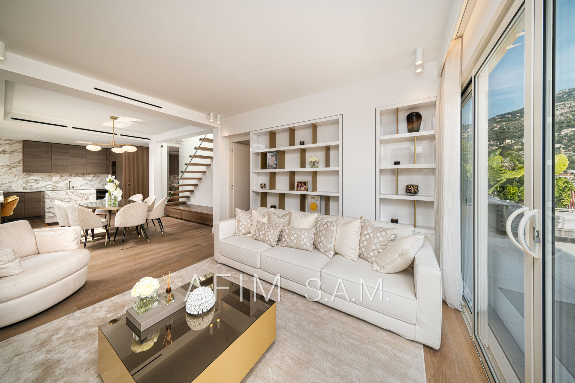 CO-EXCLUSIVITÉ – Offrant une belle vue Mer et Principauté, cet ÉLEGANT DUPLEX de 5 PIECES, avec PISCINE sur son toit terrasse, a été rénové en totalité avec des matériaux de haute qualité. Ses 426 m² de surface totale répartis sur 2 étages sont disposés ainsi :