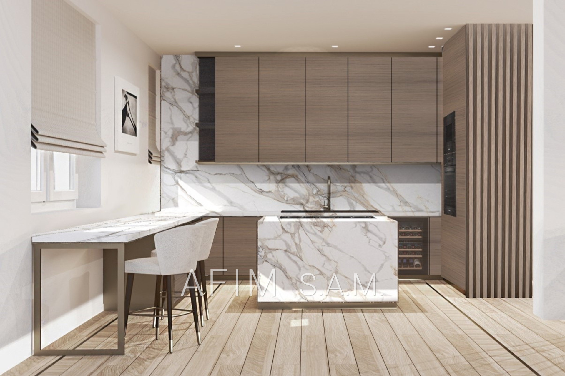 5ème étage : Hall d’entrée, cuisine ouverte équipée, salle à manger, salon, chambre de Maître avec salle de bains en suite ouvrant sur la terrasse, un toilettes invité, 3 chambres avec salle de bains ou douche.