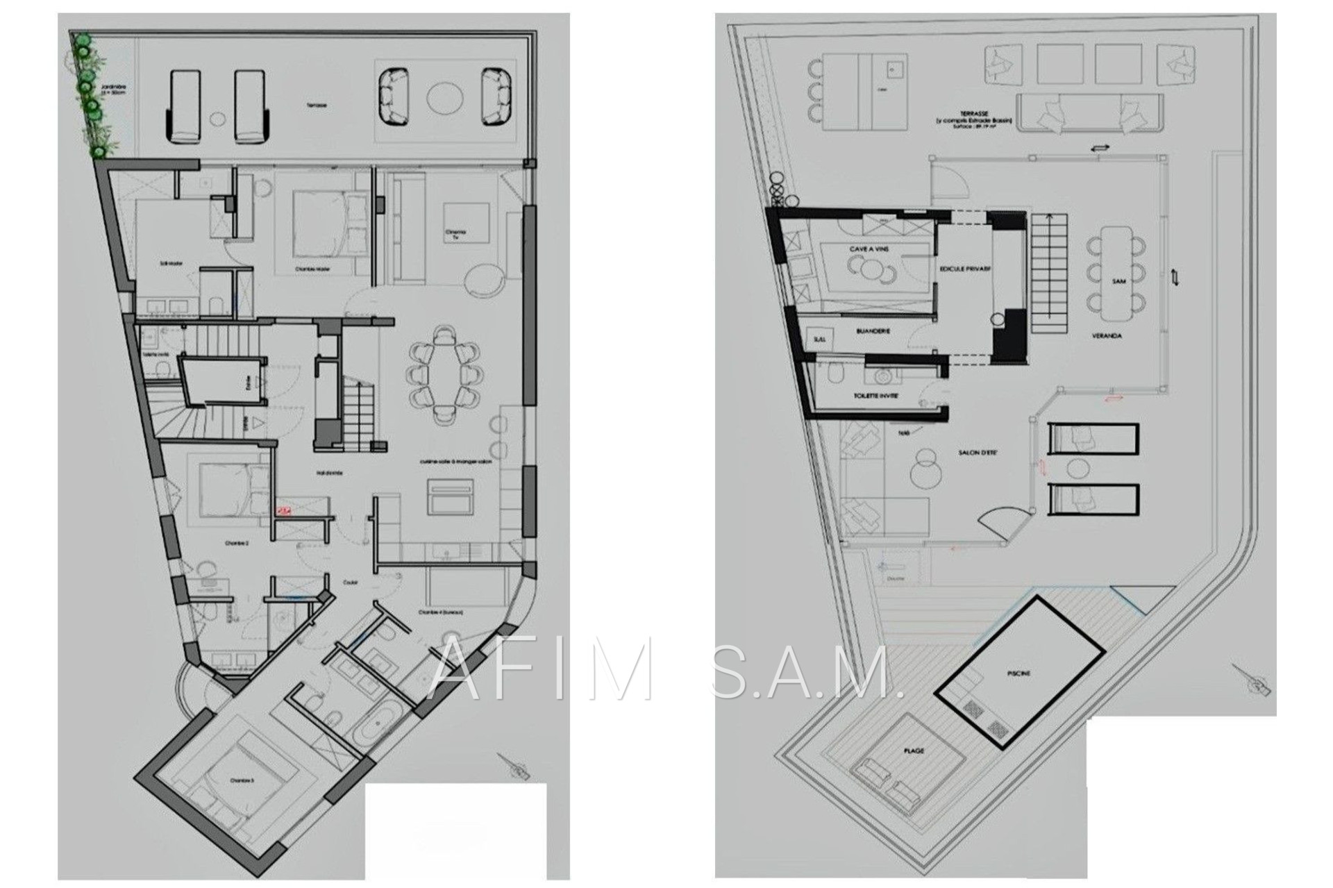 6ème étage: Vaste terrasse avec piscine et véranda, corner salle à manger, espace salon lounge, cuisine d’été, grande cave à vins, édicule privatif, buanderie, toilettes invités.
