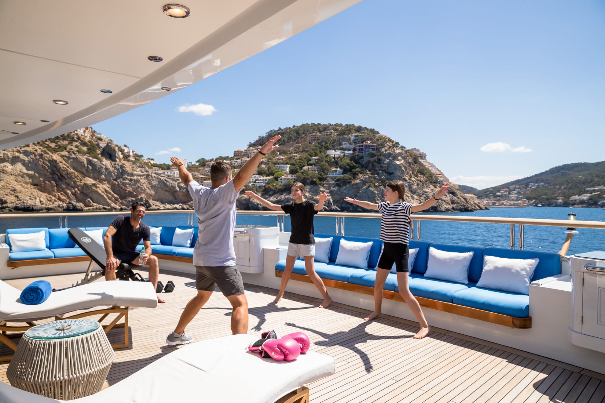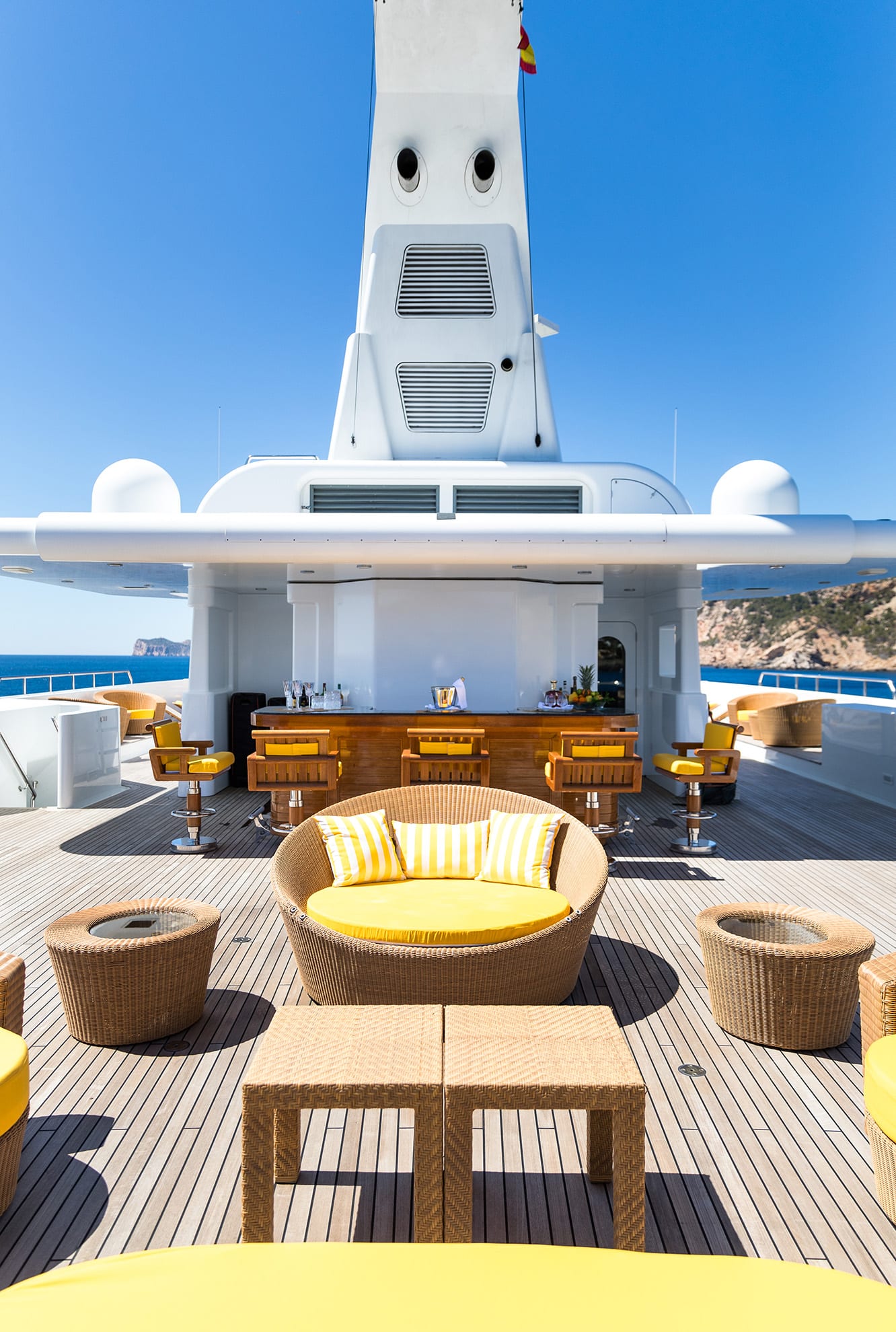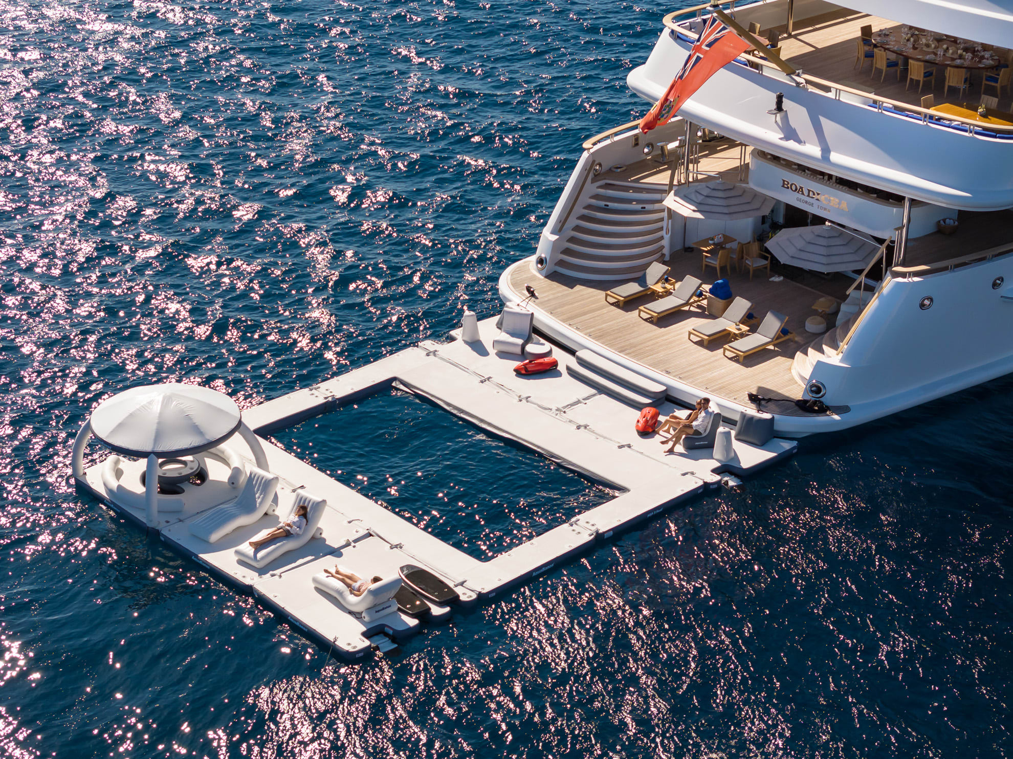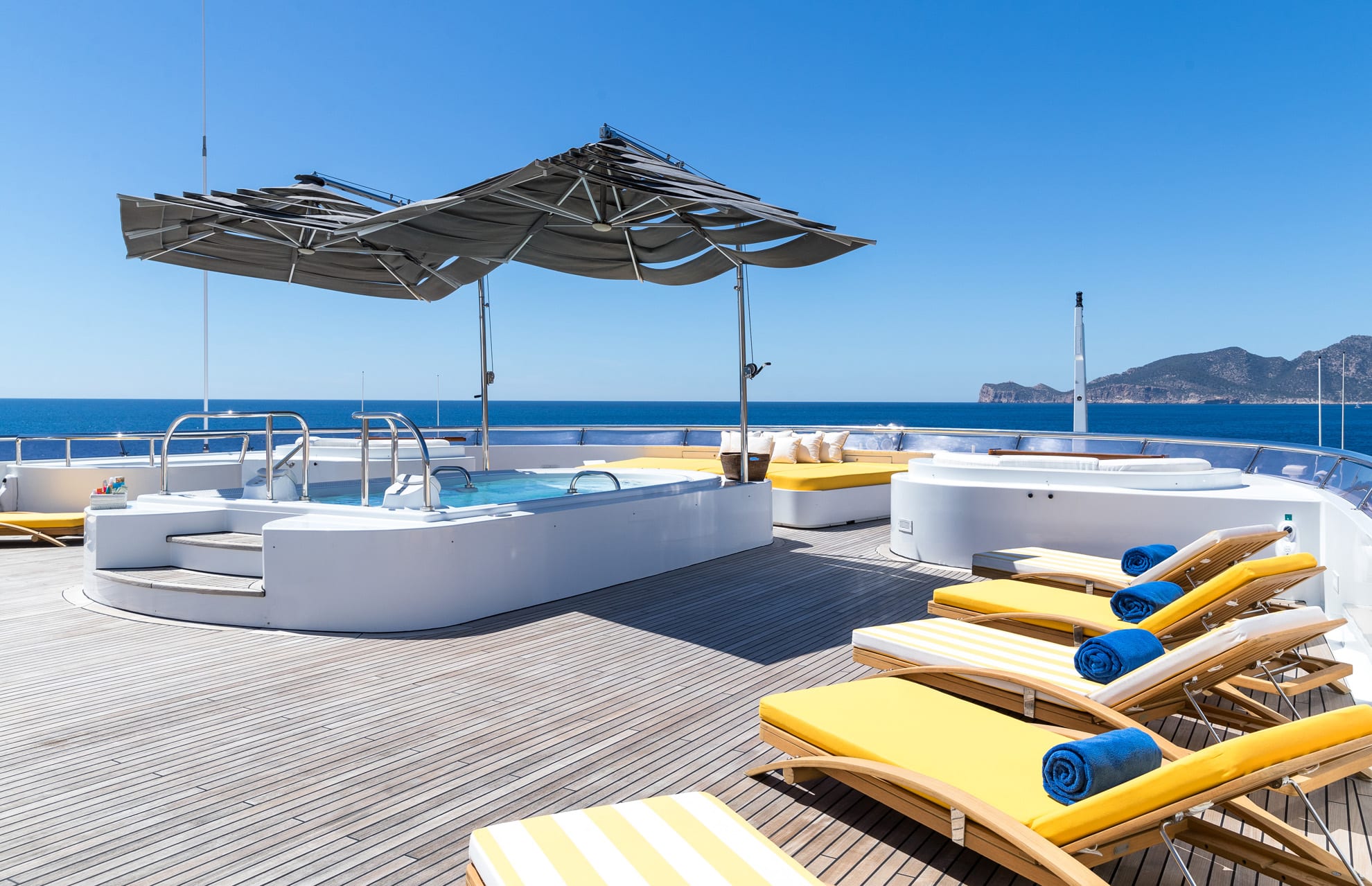 – Features: Spa, cinema, beach club, elevator, deck jacuzzi, water toys