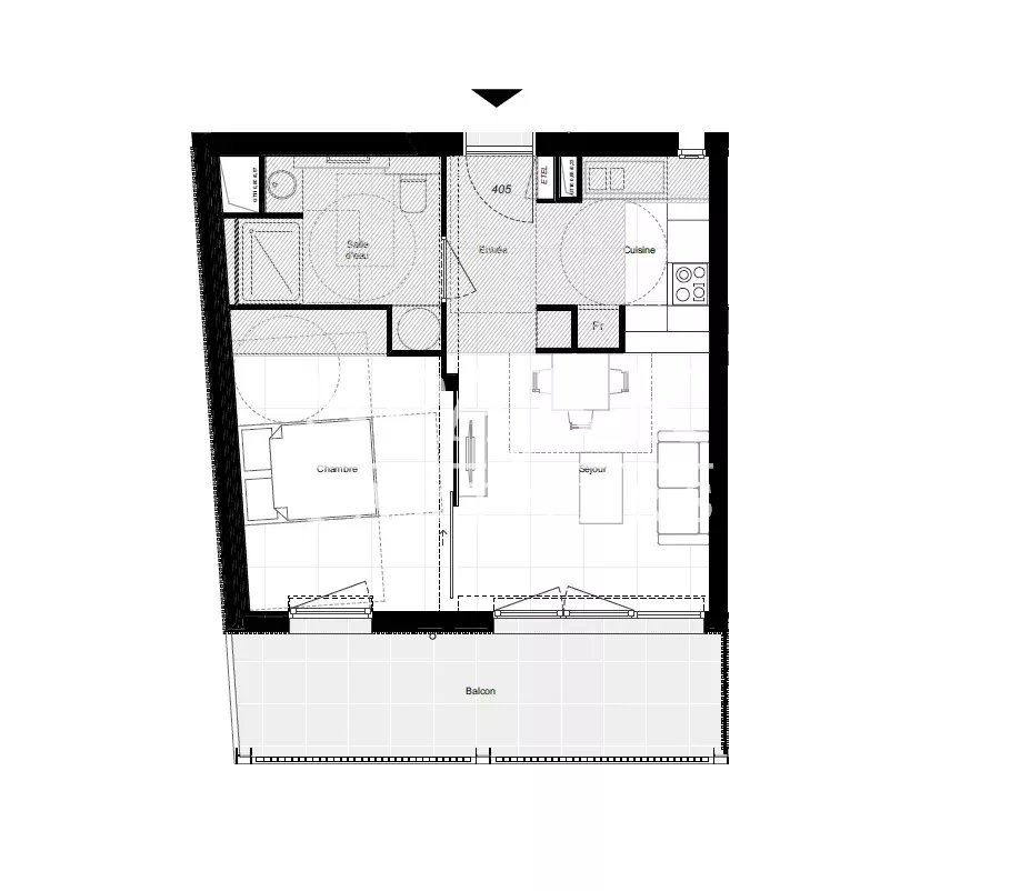 With 41.14 m² of living space, this bright apartment offers a comfortable and harmonious living environment. It comprises an entrance hall, a bright living room with open-plan kitchen, a bedroom, a bathroom and an 11.88 m² terrace.