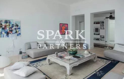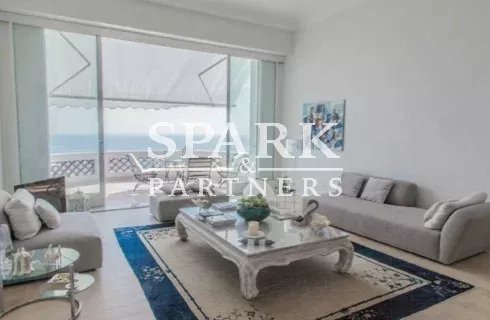 Entirely renovated with high-quality materials and decorated with care, with columns and high ceilings, this charming top-floor apartment boasts a superb terrace with 360° panoramic sea views.