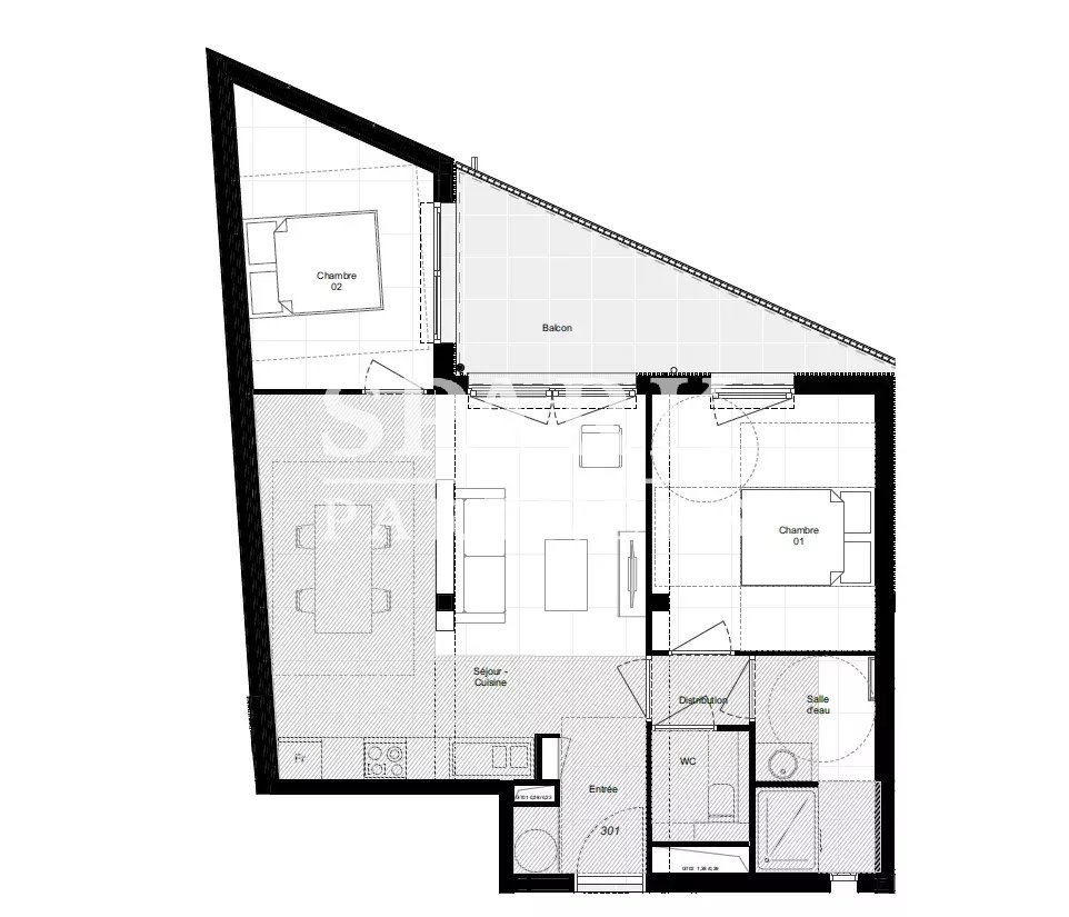 With a living area of 60.76 m², this spacious, light-filled property has been designed to offer absolute comfort in an exceptional environment. It comprises a refined entrance hall, a bright living room with open kitchen, two bedrooms, a bathroom and a beautiful 9.37 m² terrace, ideal for enjoying balmy Mediterranean evenings.