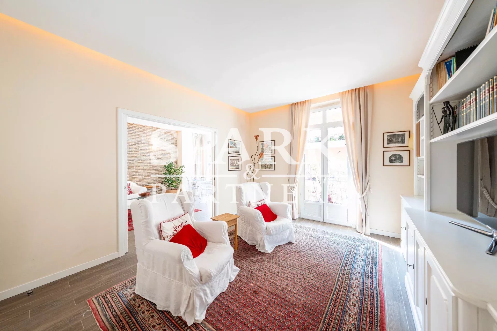 Situated in a bourgeois building with elevator, a stone’s throw from the Carré d’Or and within easy reach of all amenities, transport, the railway station and the port of Monaco, this elegant 4-room apartment elegantly combines old-world charm with contemporary comfort.