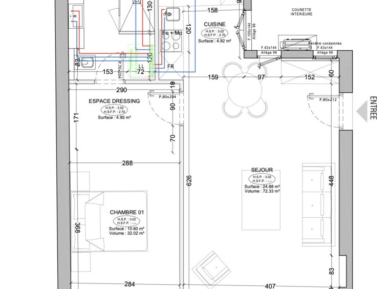 The apartment features a spacious living room with open-plan kitchen, a comfortable bedroom, a modern shower room, and a small balcony. With 3-meter-high ceilings, it offers an airy and bright living environment. A cellar completes this property.