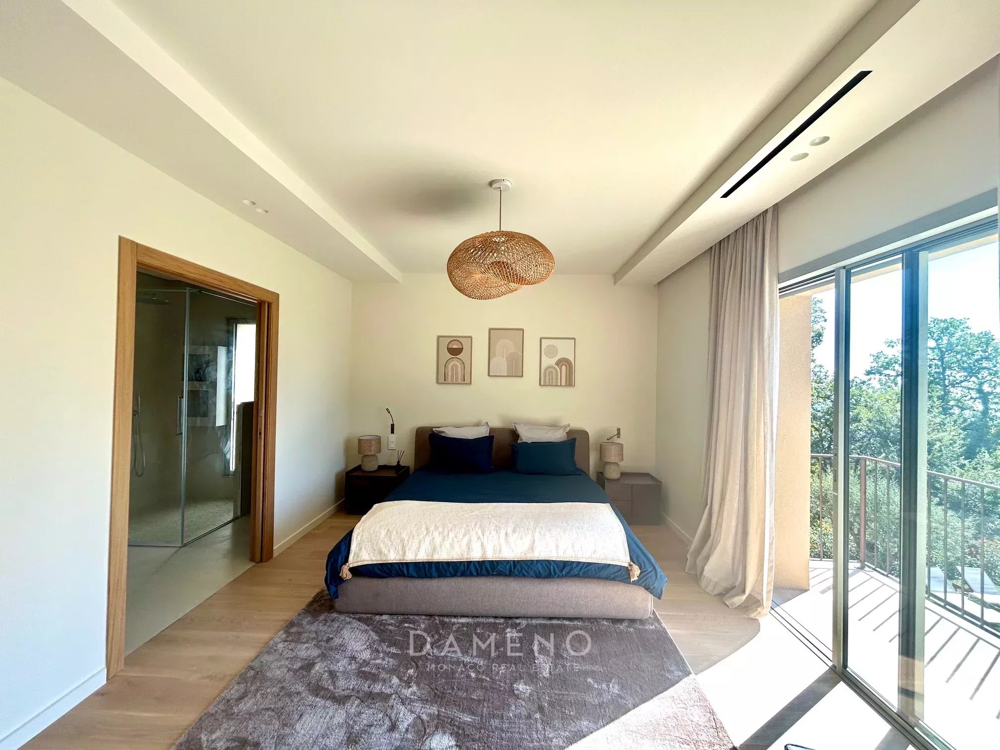 On the heights of Vence, discover a superb stone villa combining Provençal charm and contemporary features. Nestled in a peaceful and sunny south-facing setting, this 180 m² property offers a magnificent 1215 m² flat garden with a swimming pool, ideal for enjoying the Côte d’Azur climate year-round.