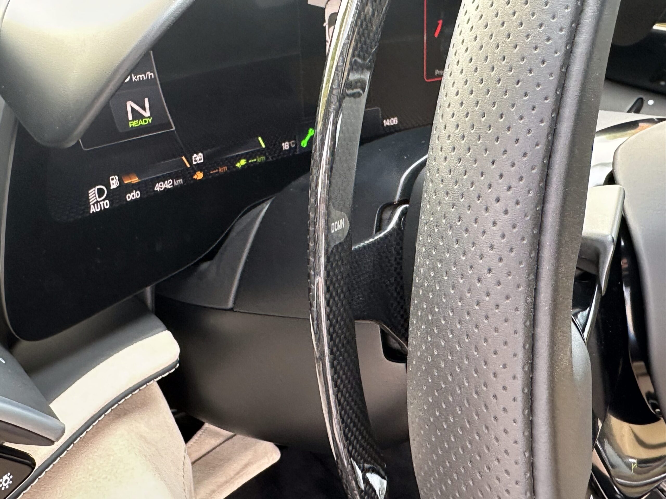 – Carbon steering wheel with LEDs