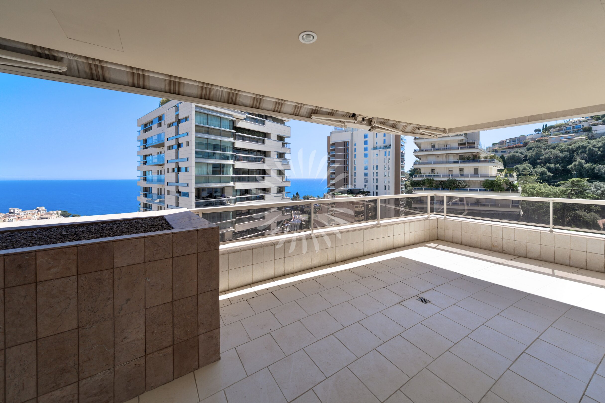 Situated in the prestigious Patio Palace residence, this exceptional apartment offers tranquillity, comfort, and breathtaking views over the Mediterranean Sea and the Rock of Monaco.