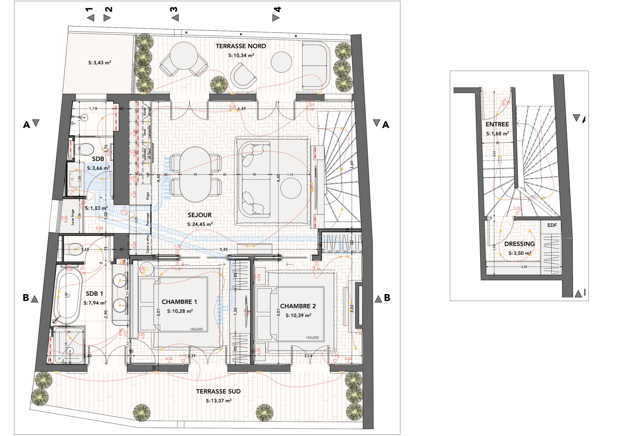 Nestled between Place du Palais and the Town Hall, this exceptional apartment under renovation combines historic charm with refined modern finishes.