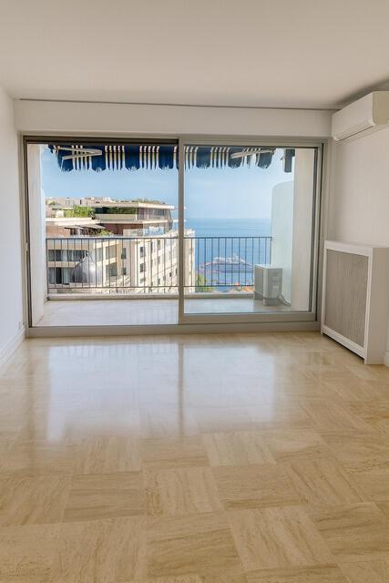 Spacious studio in excellent condition, ideally located in a prestigious residence in the heart of the Carré d’Or. The apartment features an entrance hall with built-in cupboards, a full bathroom, a semi-open fitted kitchen, and a bright living room opening onto a 11 m² terrace with beautiful sea views.