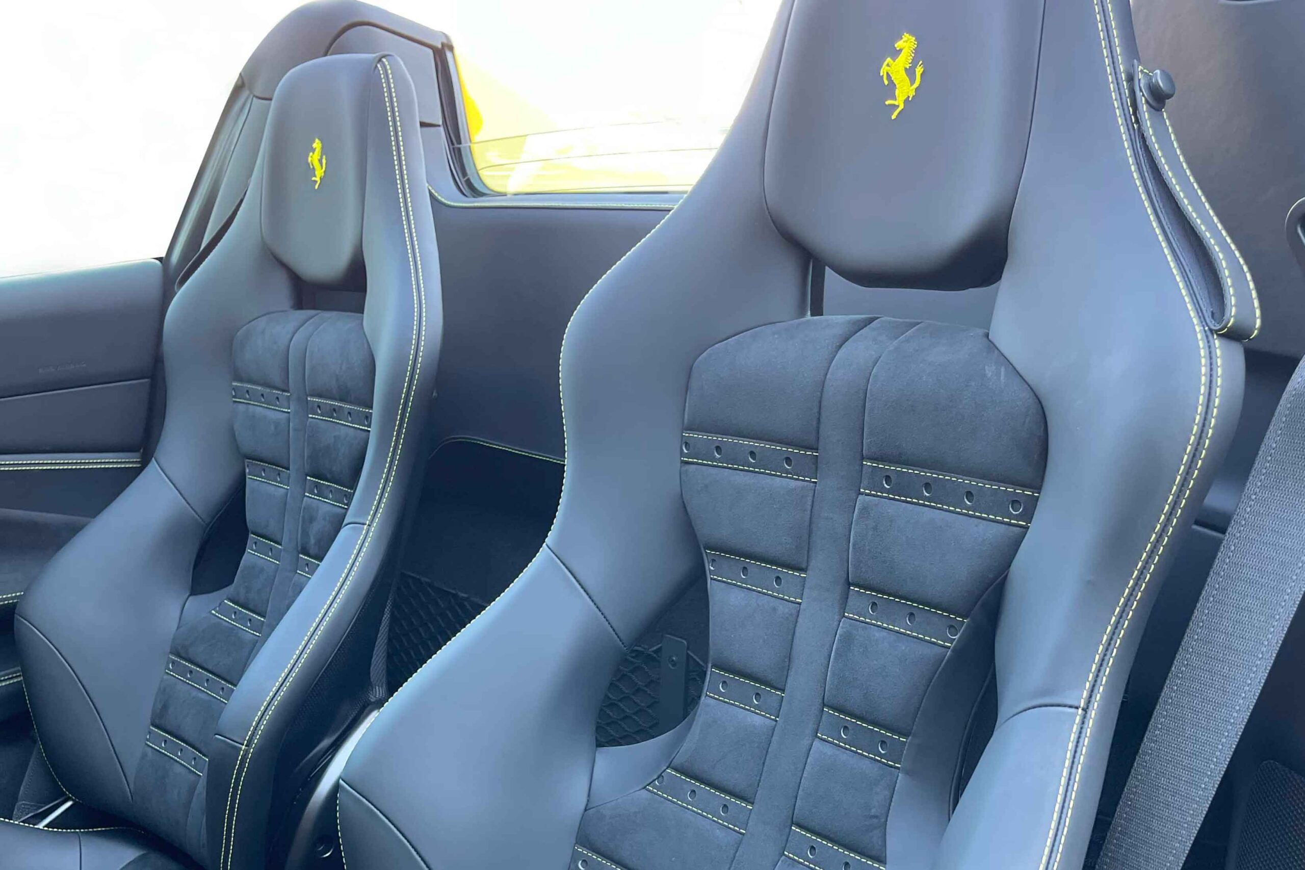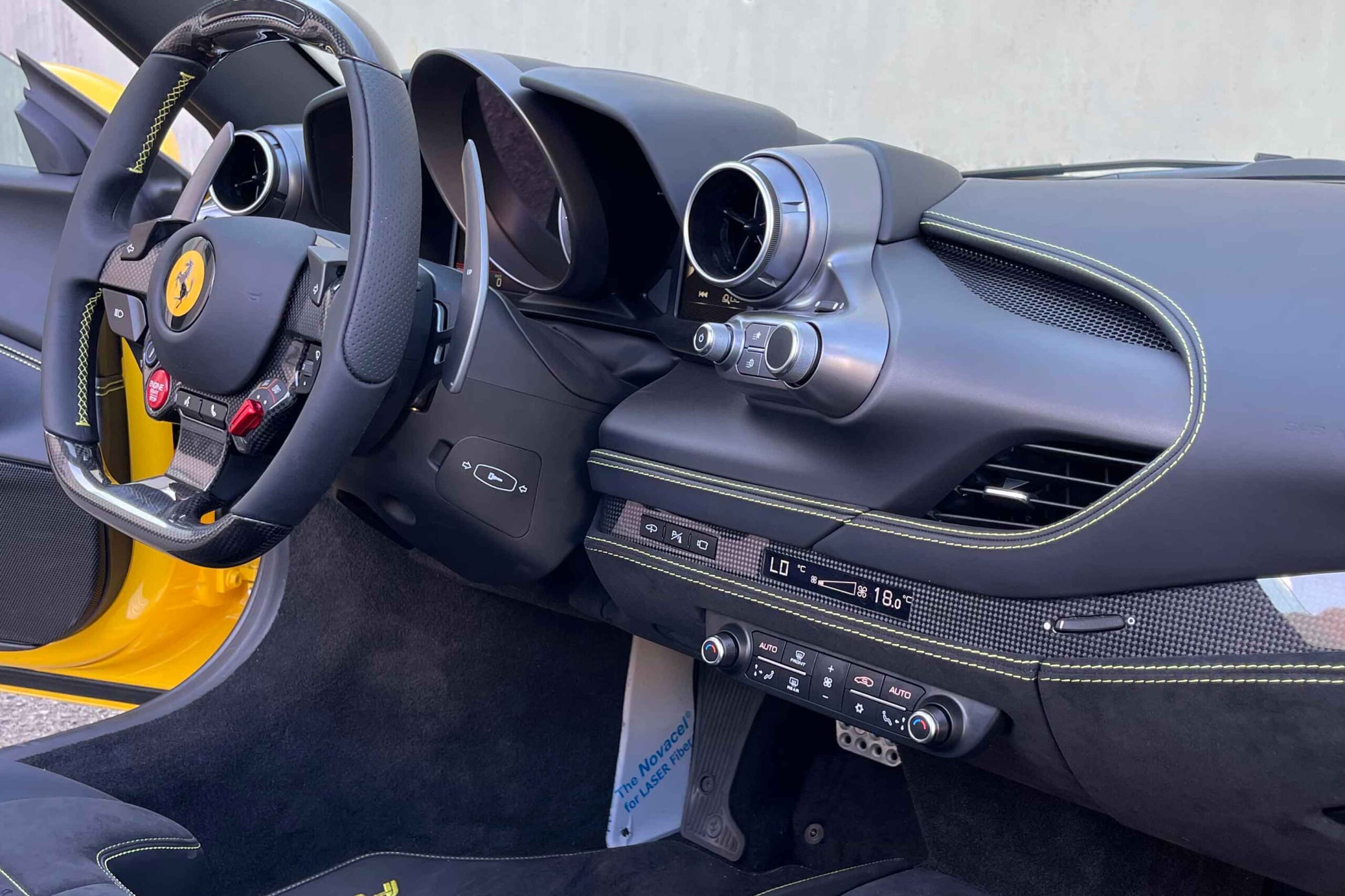 Its Modena Yellow exterior, Daytona carbon-fiber racing seats, and black Alcantara interior create a bold and unmistakably Ferrari aesthetic. The cabin is refined yet race-inspired, featuring carbon fiber across the steering wheel, tunnel, and handles. Equipped with front and rear sensors and a Parking Camera, this convertible blends everyday usability with supercar precision.