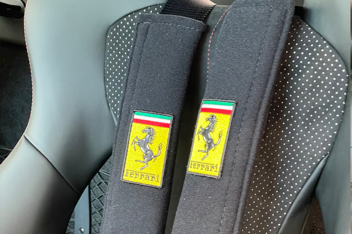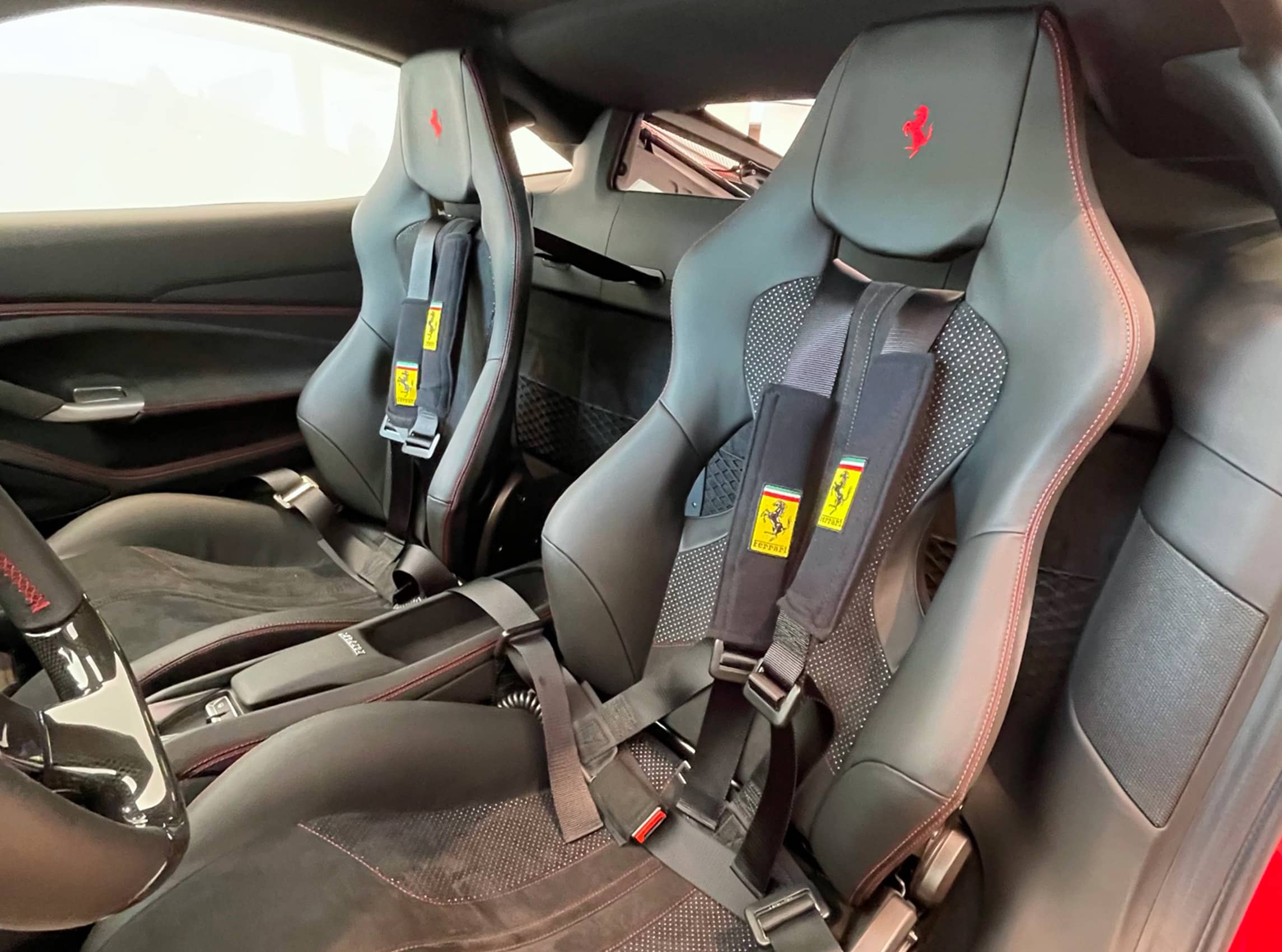 Its Rosso Corsa exterior, 20” dark rims, and yellow brake calipers make an immediate statement. Inside, the carbon fiber sport seats, black Alcantara trim, and racing-inspired cockpit immerse the driver in the spirit of Formula 1. The Parking Camera adds convenience to precision handling, making every journey as effortless as it is exhilarating.
