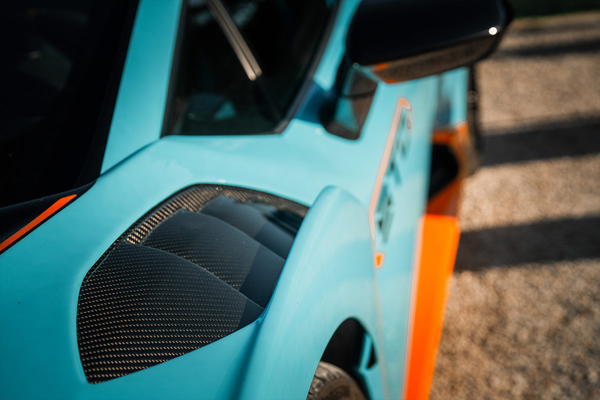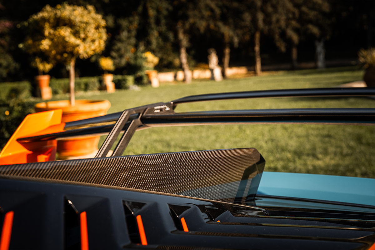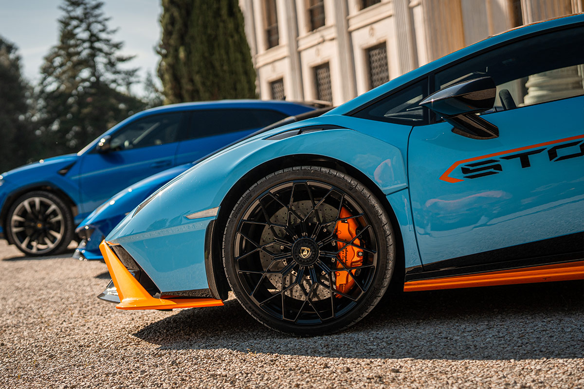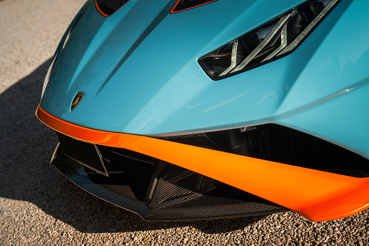 Crafted with 75% carbon fiber, the Huracán STO weighs just 1,339 kg, combining incredible agility with breathtaking power. Its signature Blu Cepheus and Arancio Xanto livery, racing seats in Alcantara and carbon, and single-nut wheels make it one of the most visually striking supercars ever built.