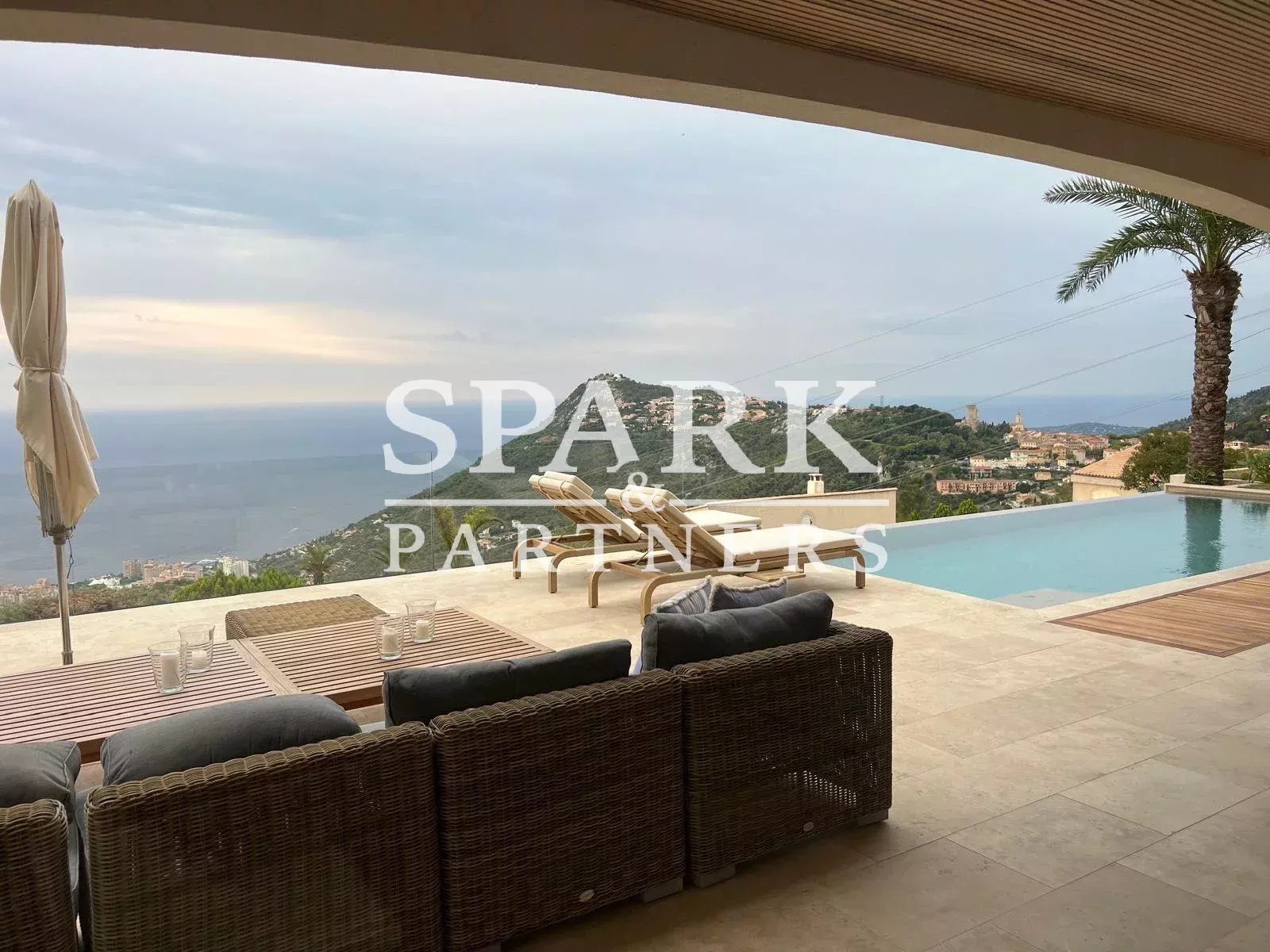 Located in La Turbie, in the heart of a private, wooded and secure estate, close to the golf course, this charming Provencal-style villa of approx. 300 m² is set in 2,000 m² of grounds with breathtaking views of the Principality and the sea.