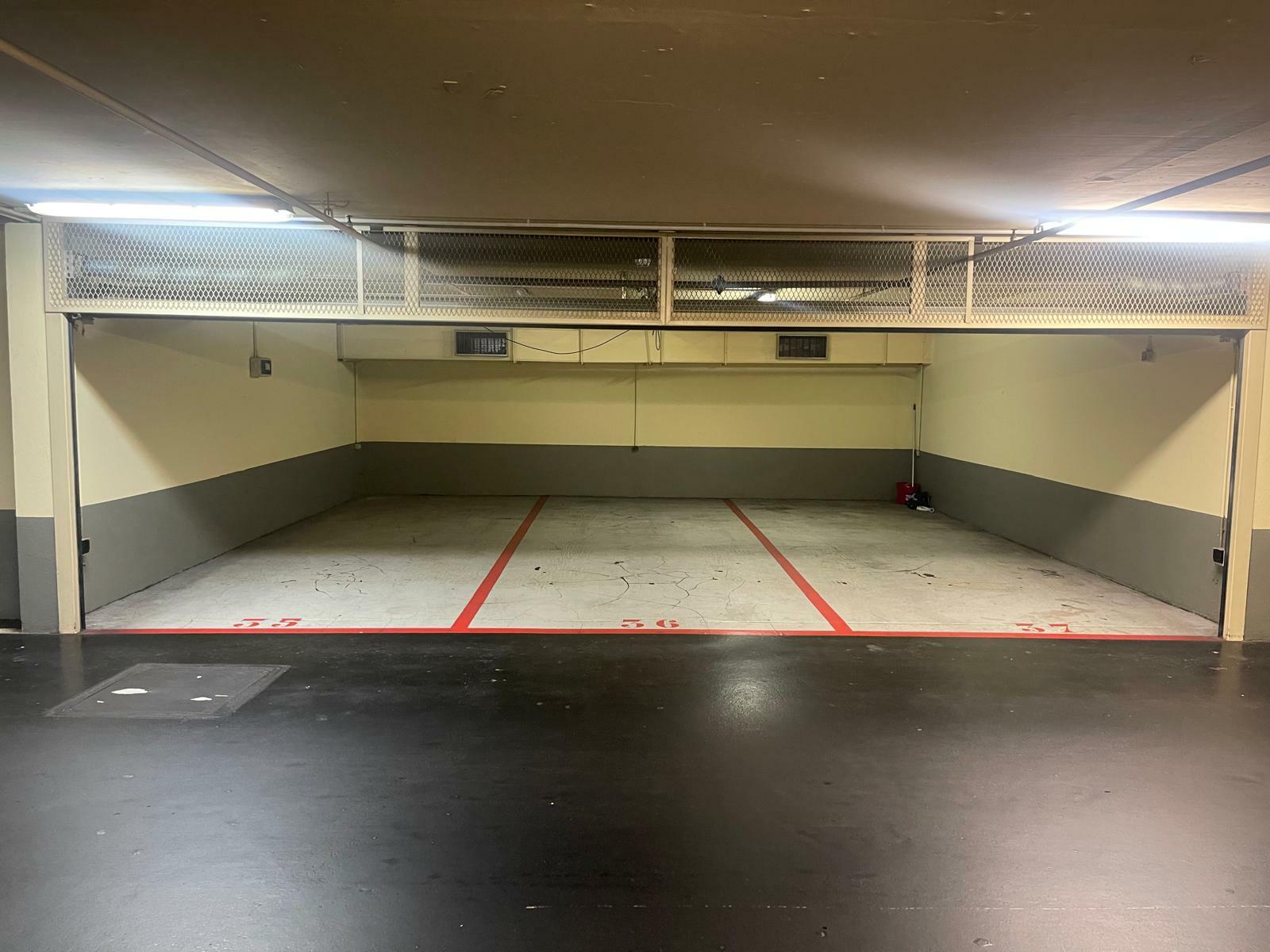 The garage is secure and fully enclosed, equipped with an automatic remote-controlled door, and offers generous dimensions to comfortably accommodate three vehicles.
