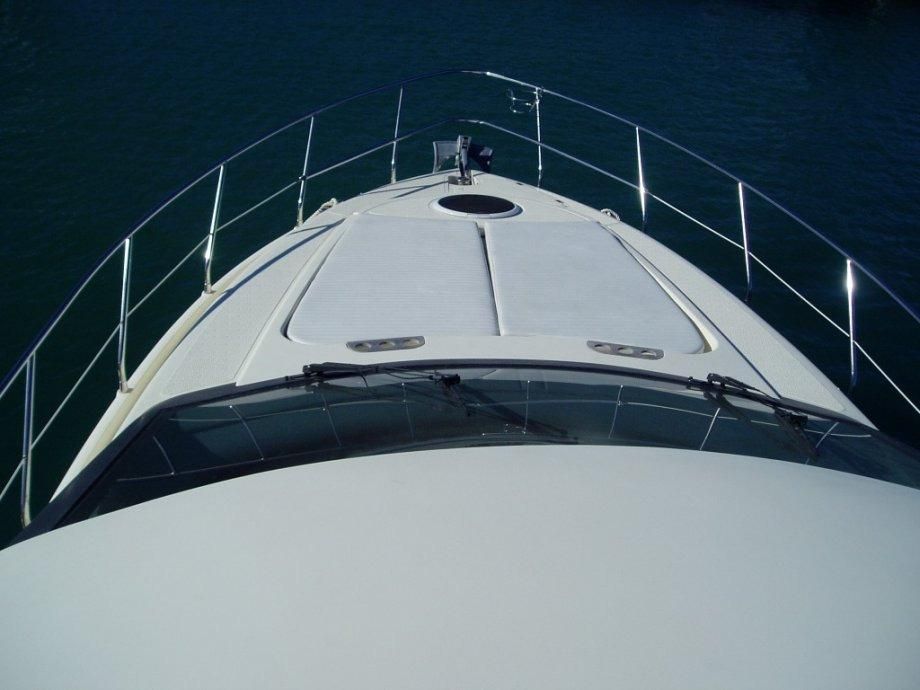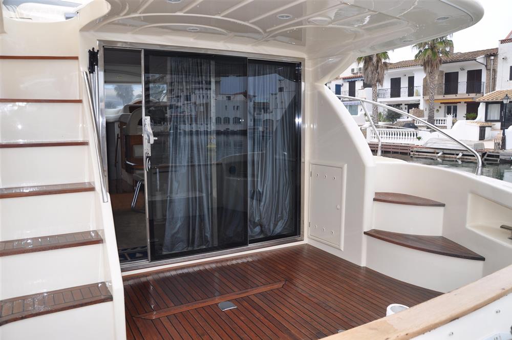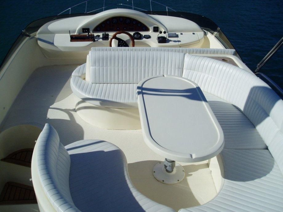 Her expansive forward sun pad invites relaxation under the Mediterranean sun, while the flybridge provides the ideal setting for gatherings and refreshing drinks under the canopy. Indoors, her open-plan galley and lounge area feature ample seating, ideal for casual dining and conversation.