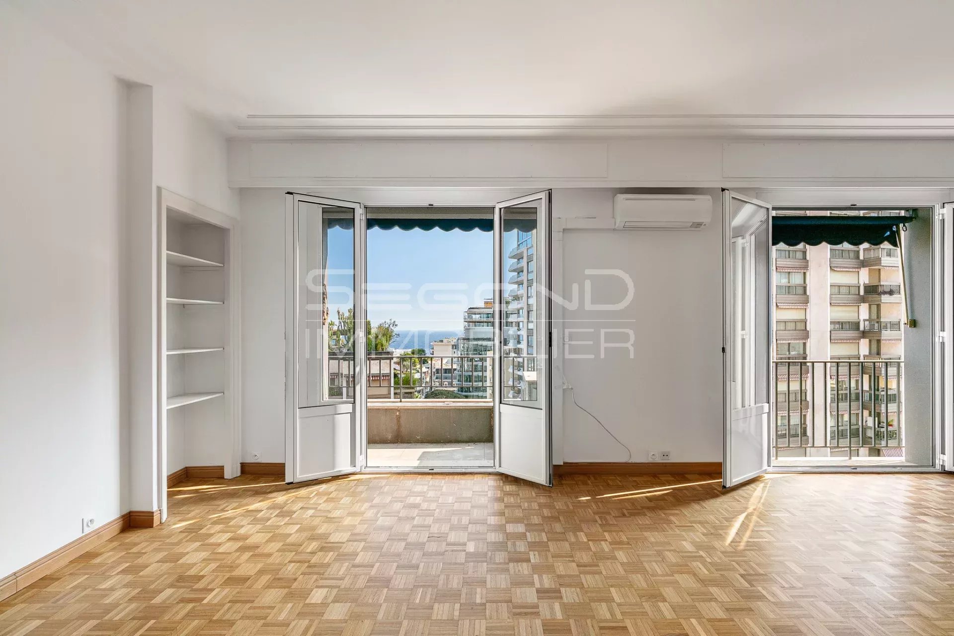 The 100 m² roof terrace offers a 360° view of Monaco and includes a summer kitchenette, dining area, and electric sunshade — ideal for entertaining and relaxing in complete privacy.