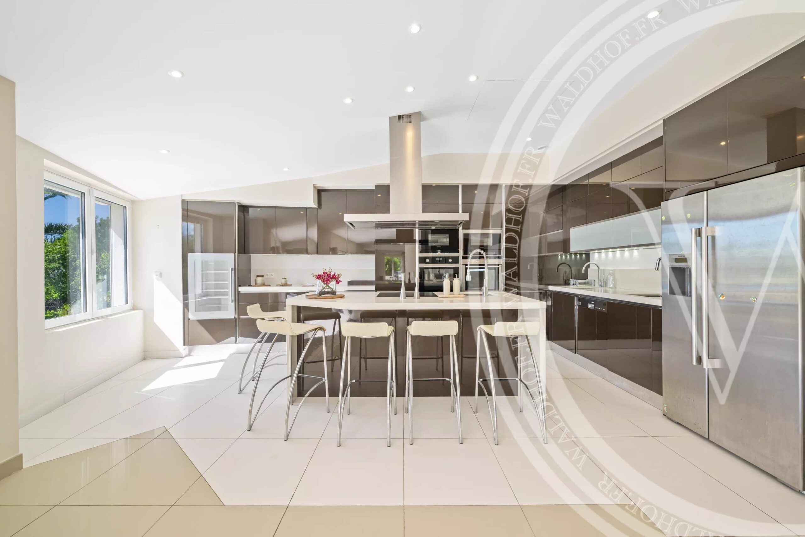 Indoors, the open-plan living spaces are bathed in natural light, accentuated by the tasteful interior design. The villa harmoniously blends luxury and practicality, making it not just a residence, but a lifestyle. Discover the perfect blend of French elegance and modern amenities in this stunning property.