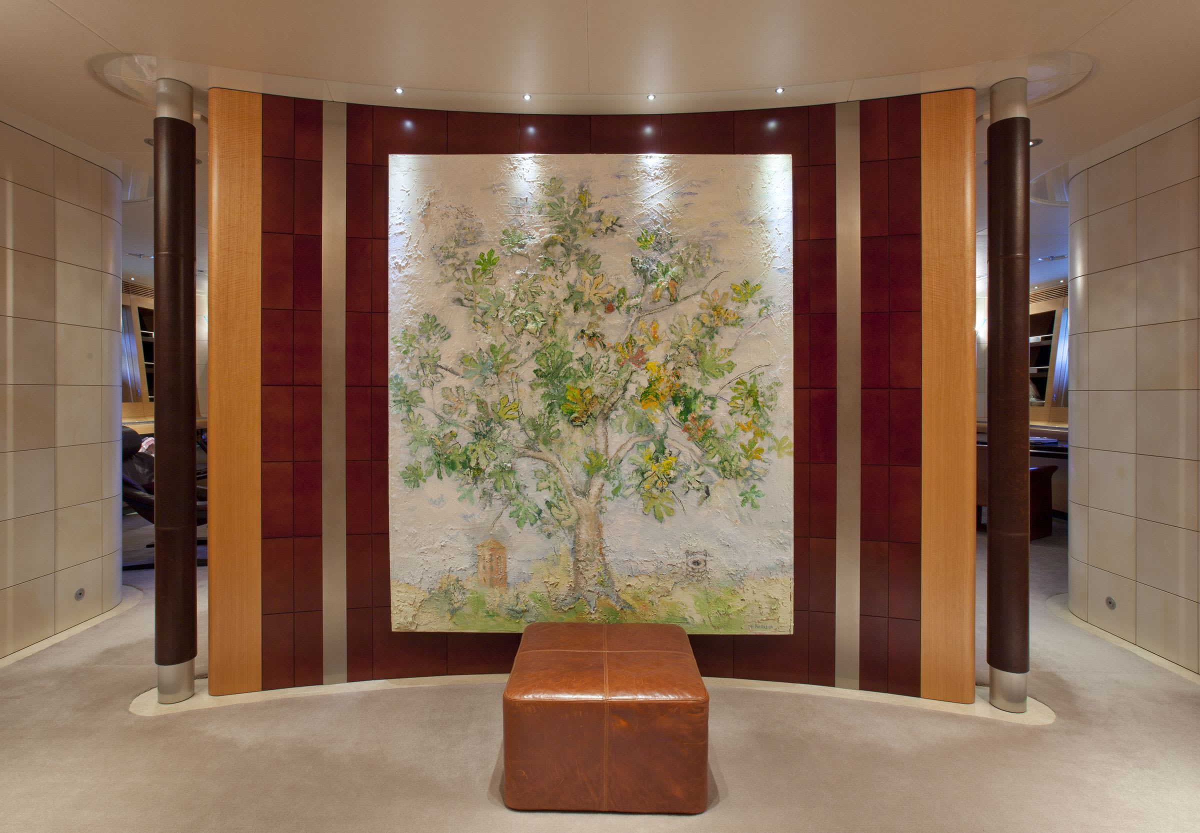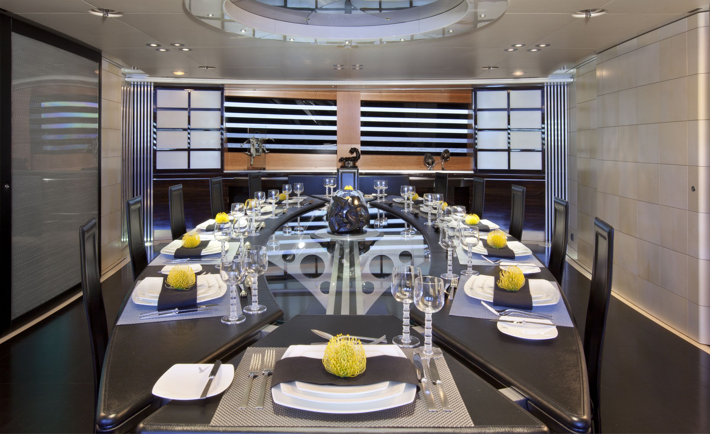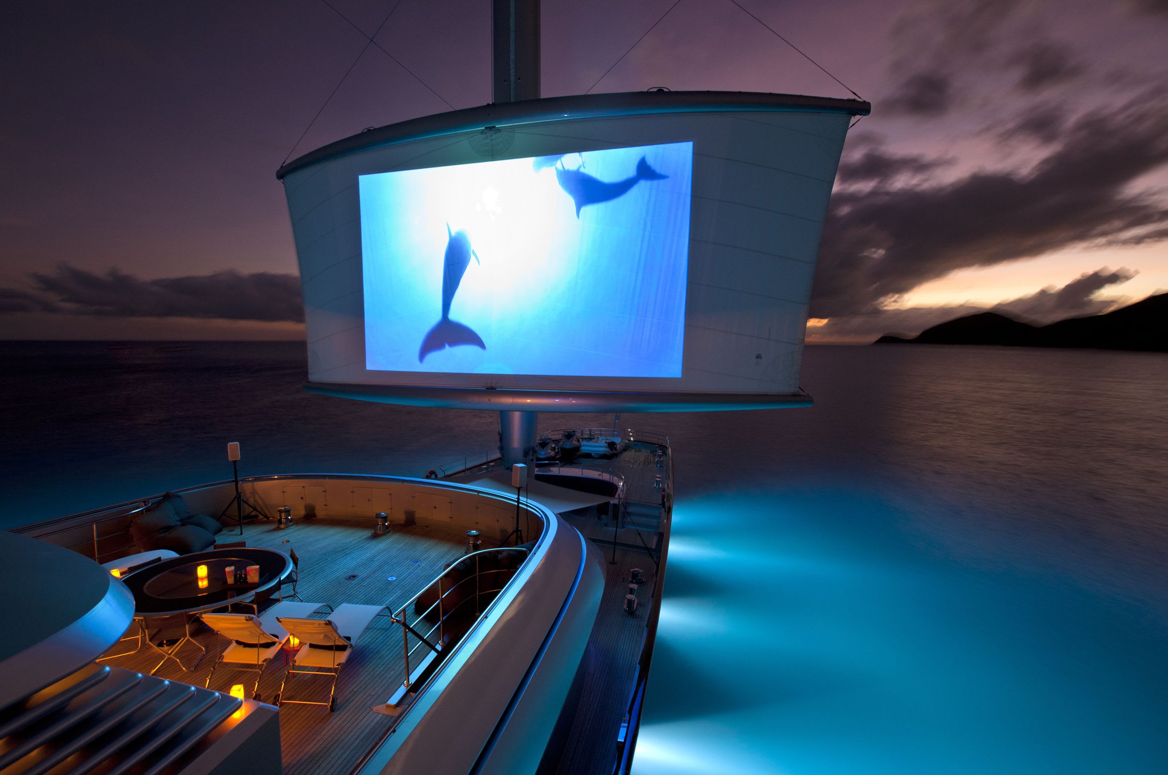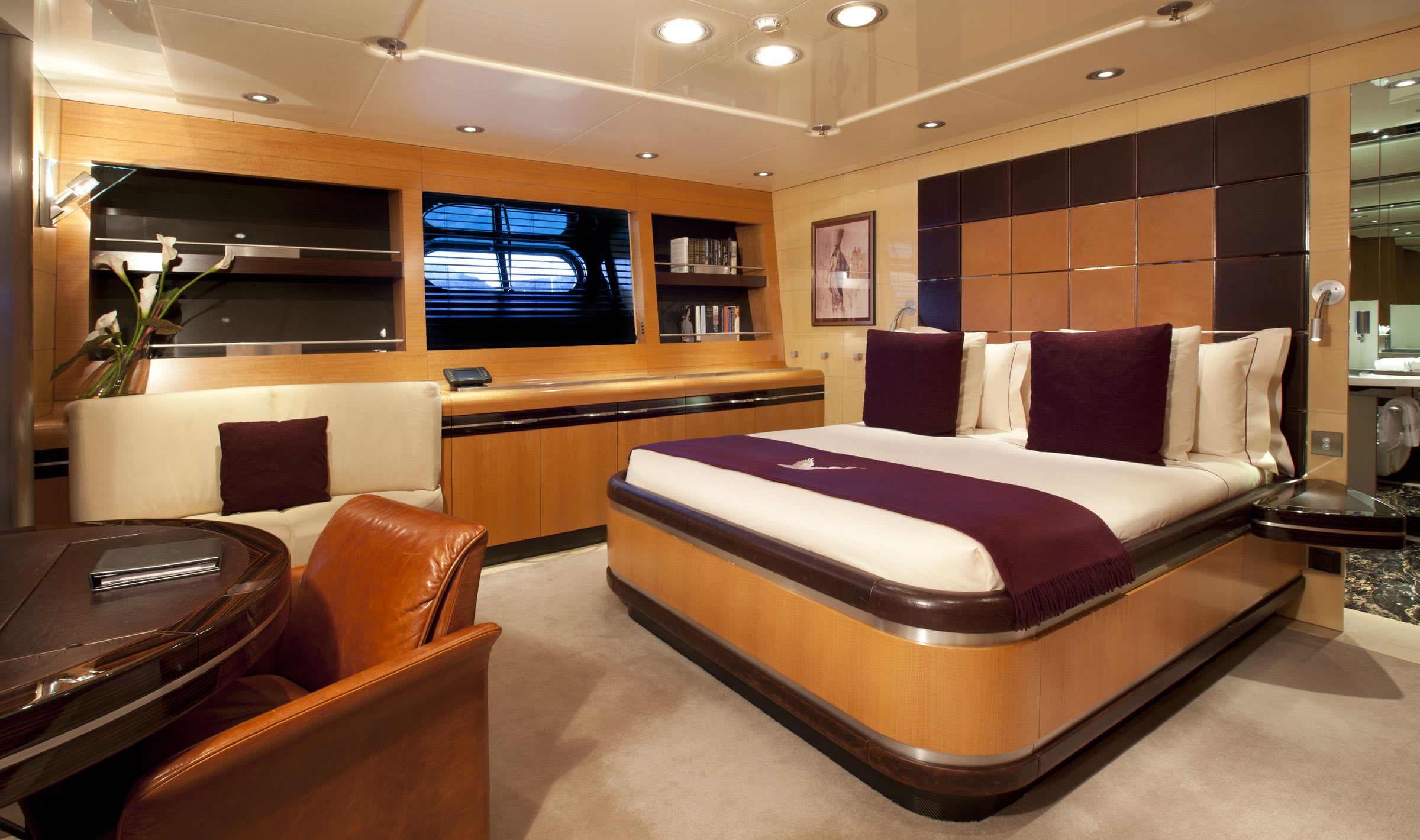 Guests enjoy expansive deck areas, alfresco dining, an outdoor cinema, and a private gym. Interiors feature contemporary artwork, refined décor, and a master suite with sliding doors opening directly onto the deck. Her beach club and wide selection of tenders and toys complete the ultimate charter experience.