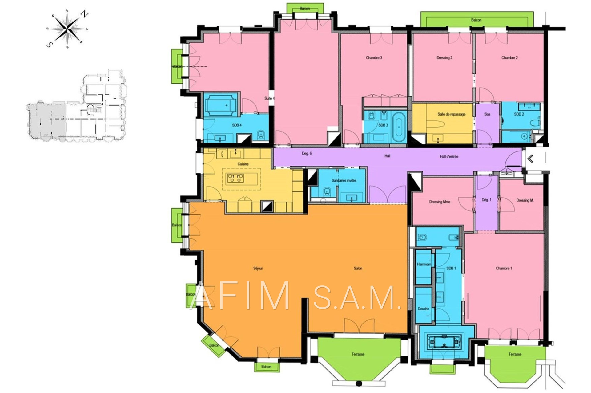 Dans une résidence de luxe, idéalement située dans le Carré d’Or, superbe appartement 6/7 pièces, de grand standing, avec vue mer.